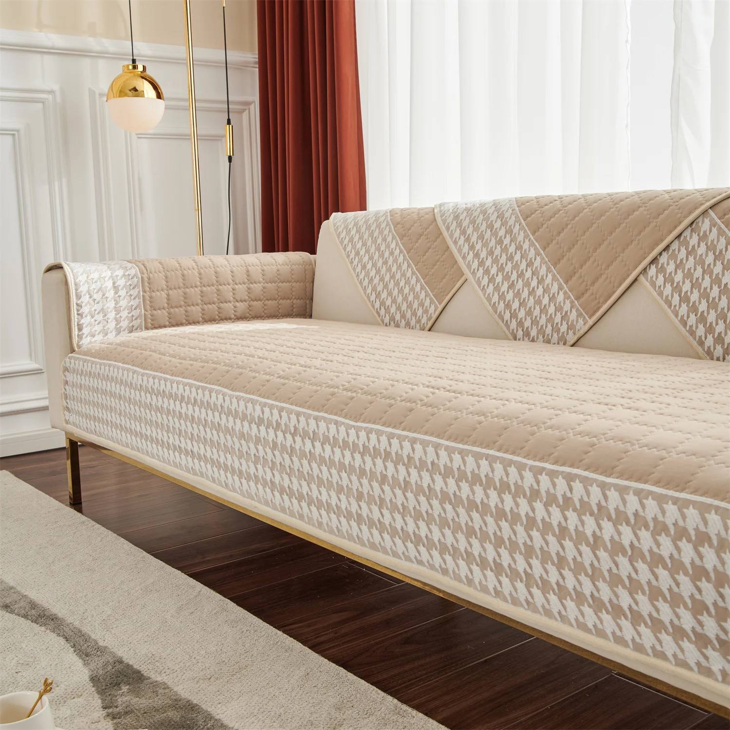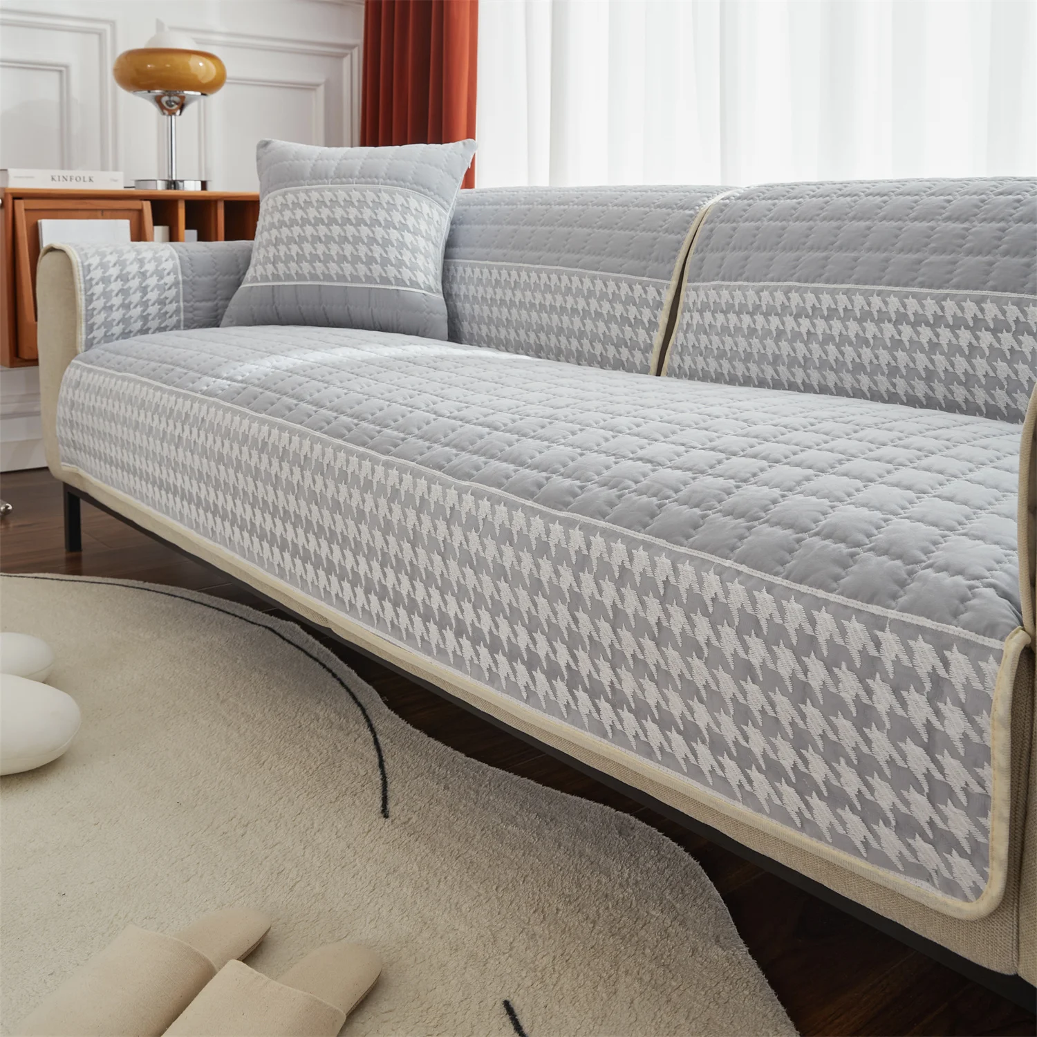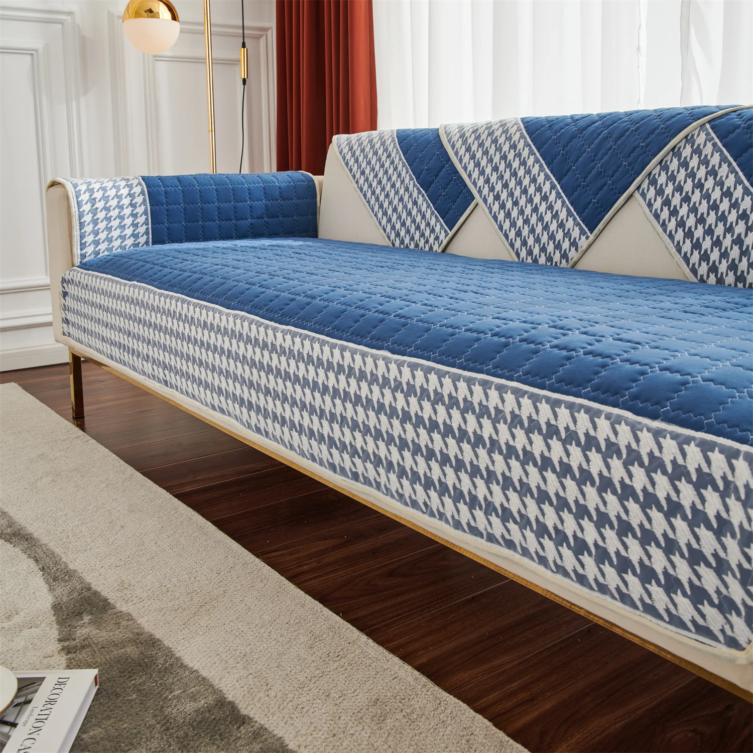 Anti-Slip Houndstooth Lace Sofa Slipcovers, Capas de assento do sofá, Pet Friendly, Capa de sofá, Docor, Sofá acolchoado