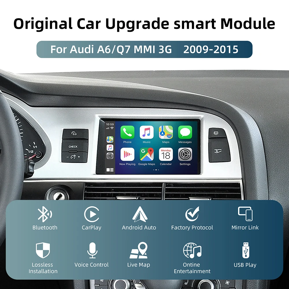 Anyfar carplay sem fio para audi a6 q7 2009-2015 mmi 3g android auto espelho link airplay câmera reversa acessórios multimídia