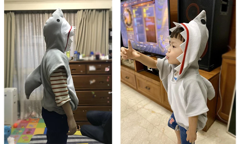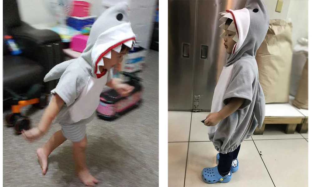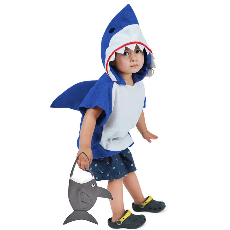 Apagável 1-6t tubarão cinza cosplay moletom com capuz traje de halloween para menino criança natal fantasia vestido menina tubarões saco de doces