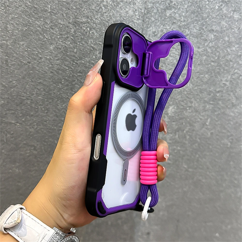 Armadura doce cor choque para magsafe caso de telefone para iphone 11 15 14 13 12 16 pro max plus suporte com alça de pulso capa traseira do telefone