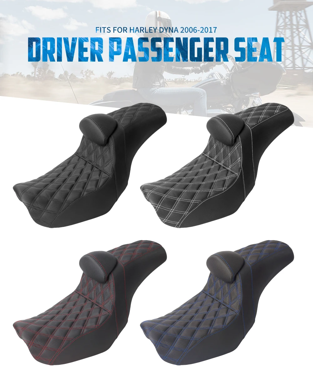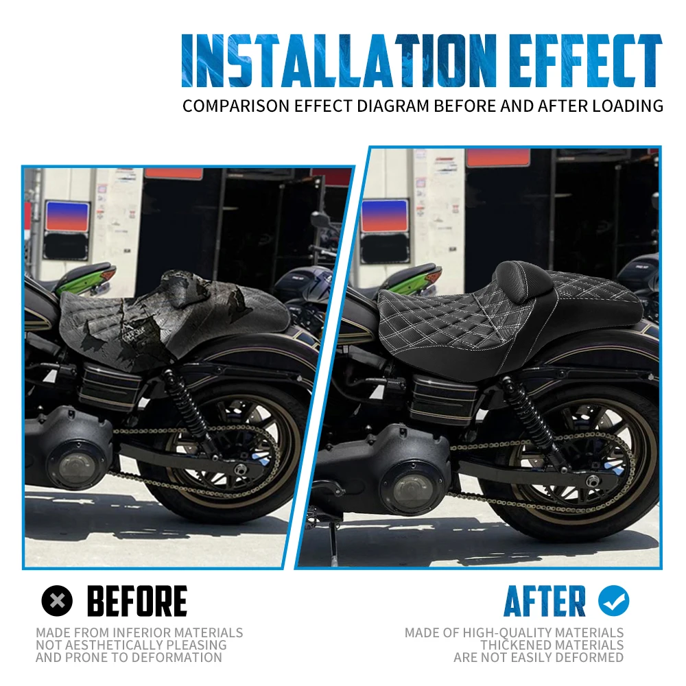 - > Assento do motorista da motocicleta com encosto dois up assento almofadas de sela para harley dyna fat bob low rider fxdl fld street bob 2006-2017