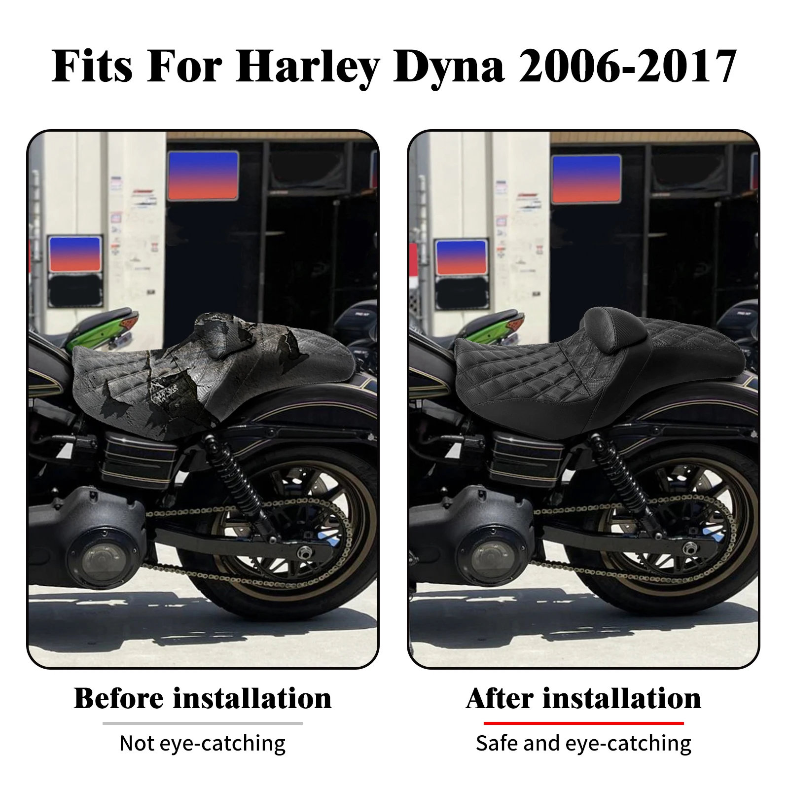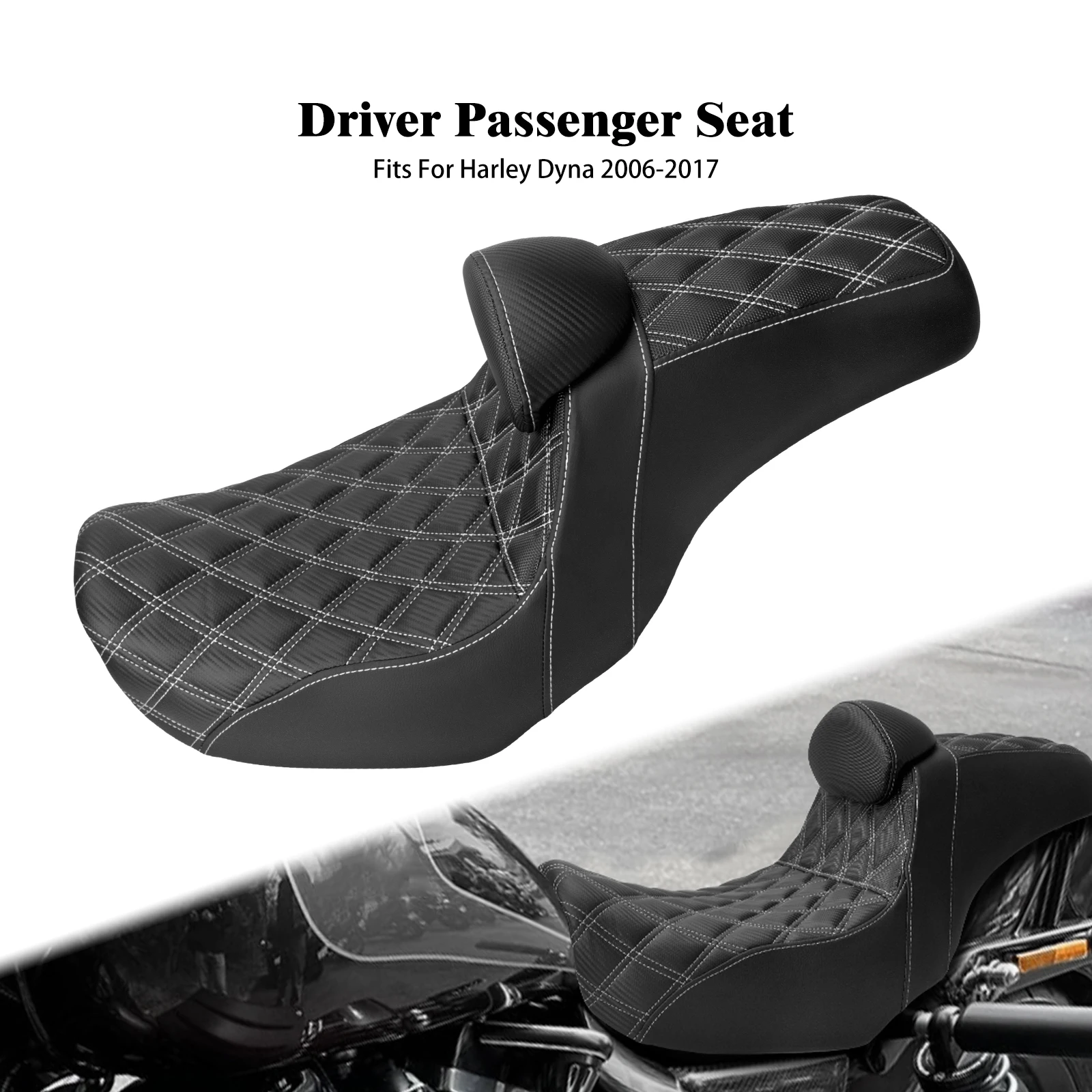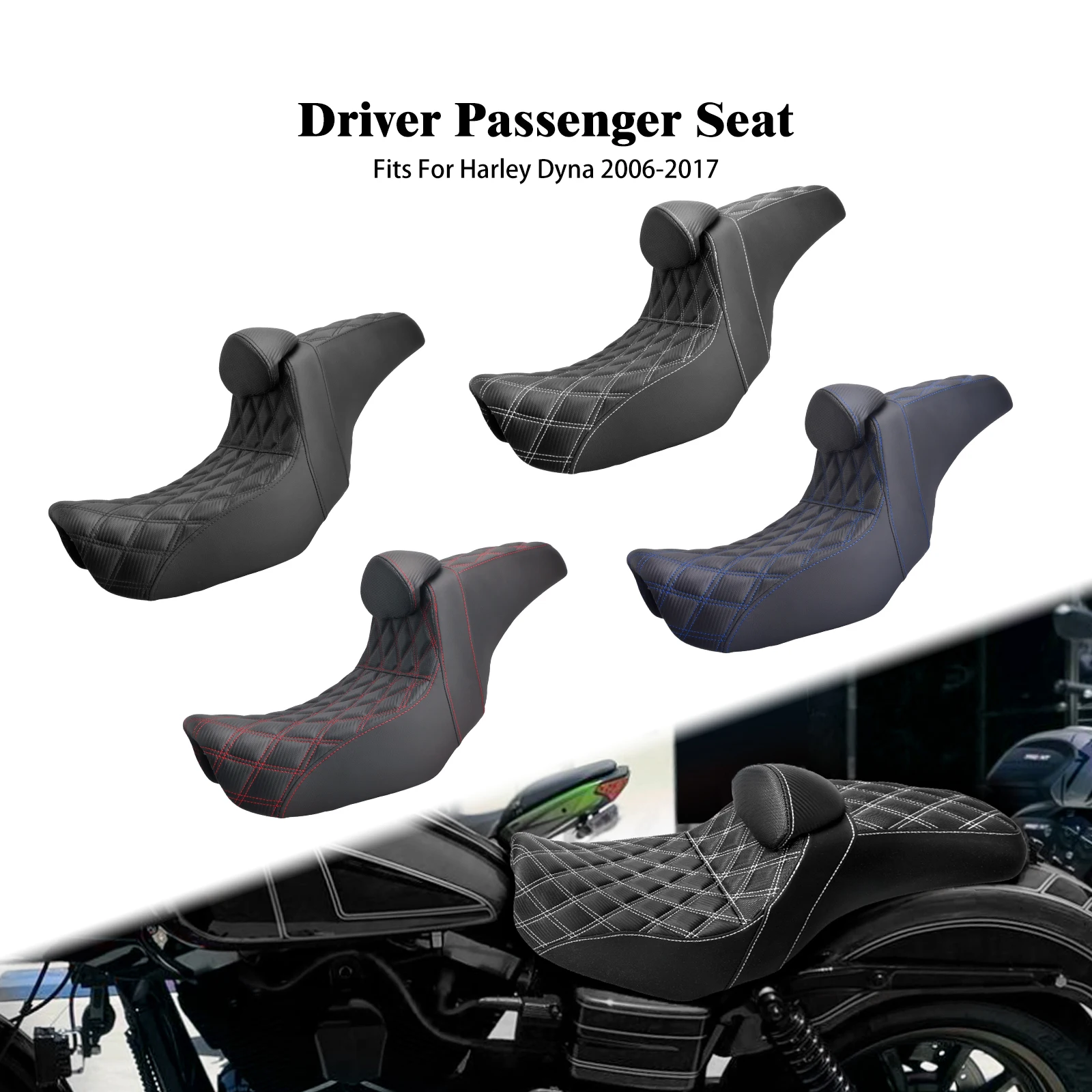 Assento duplo para motocicleta com encosto, almofadas para selim do passageiro, assento para harley dyna low rider fat bob street bob 06-2017