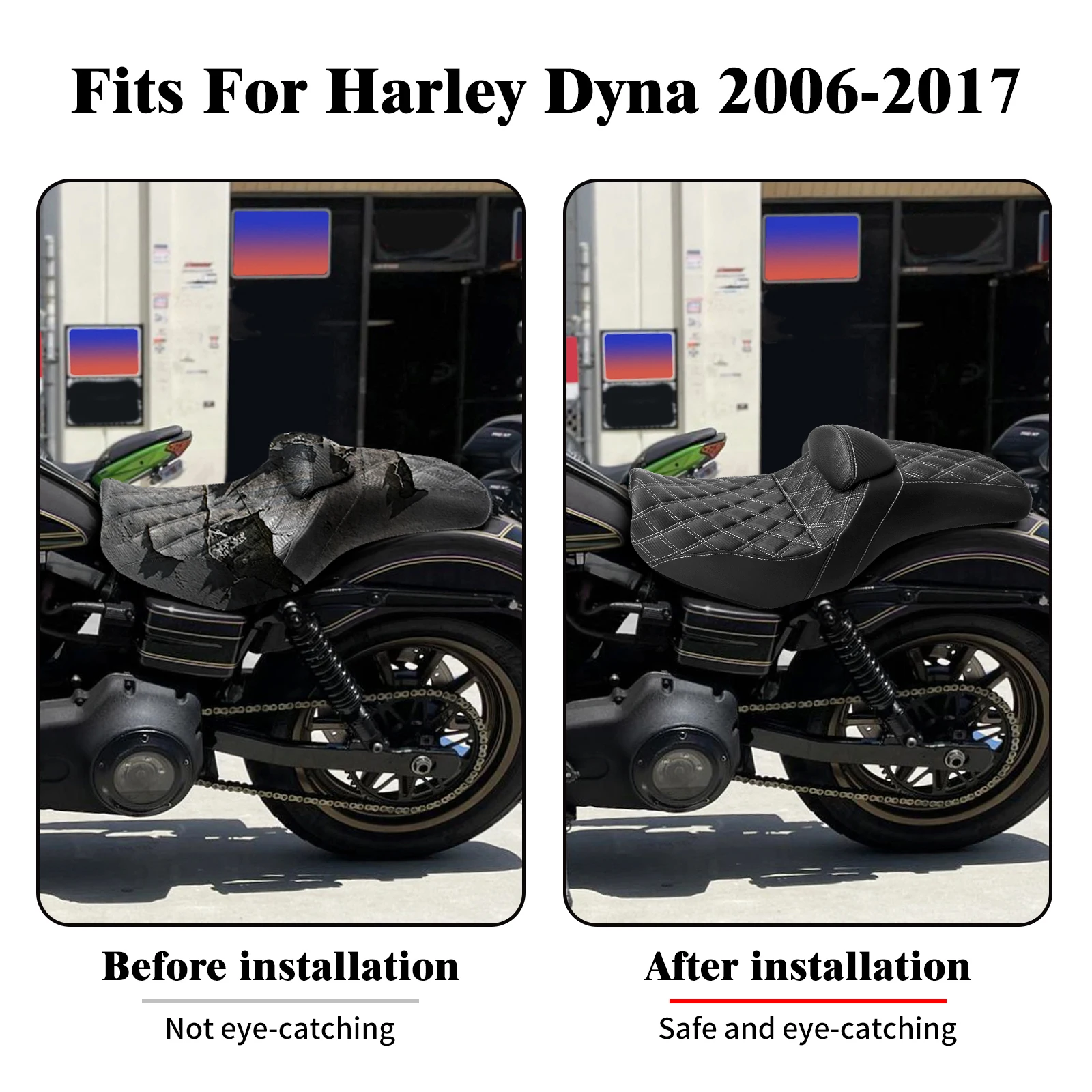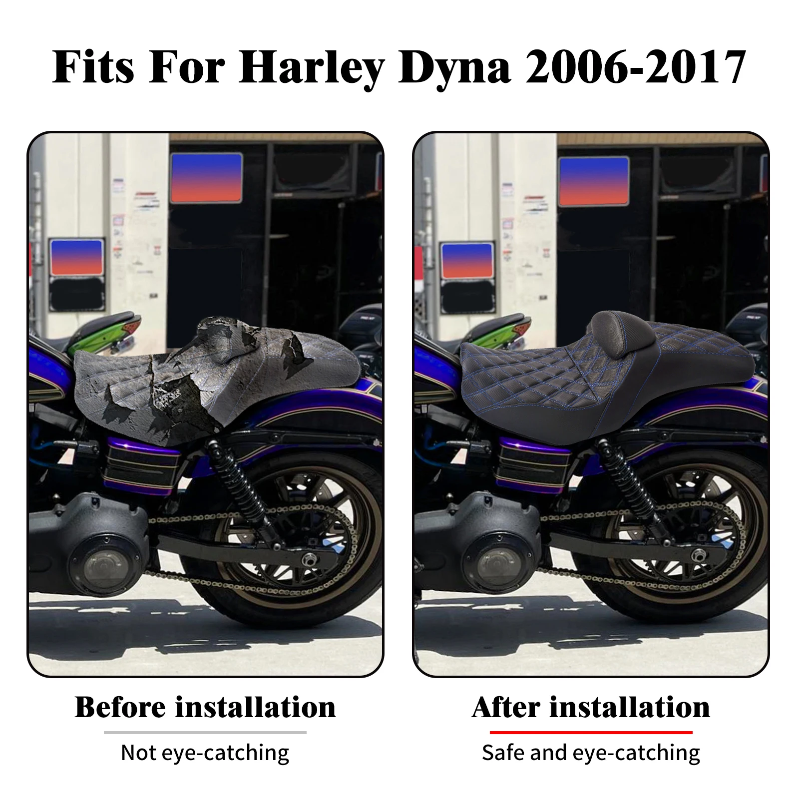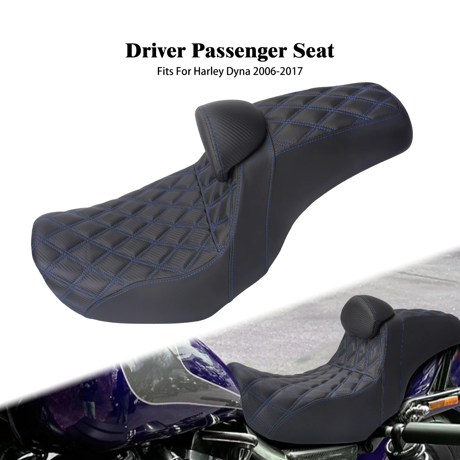 Assento duplo para motocicleta com encosto, almofadas para selim do passageiro, assento para harley dyna low rider fat bob street bob 06-2017