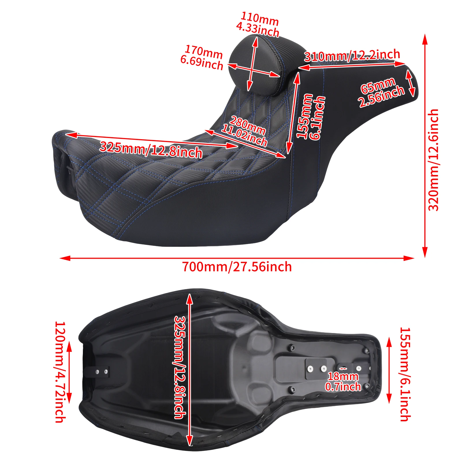 Type: Motorcycle 2-Up Front Rear Seat With Backrest Cushion