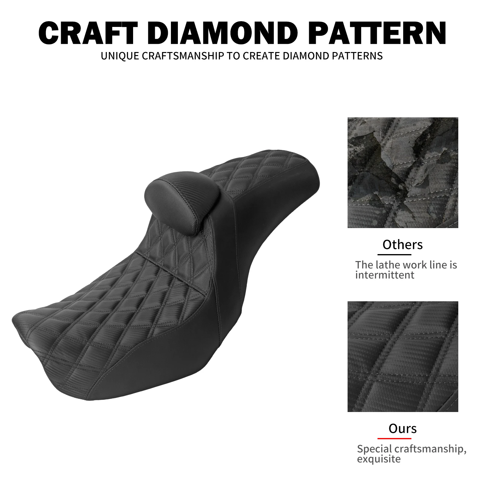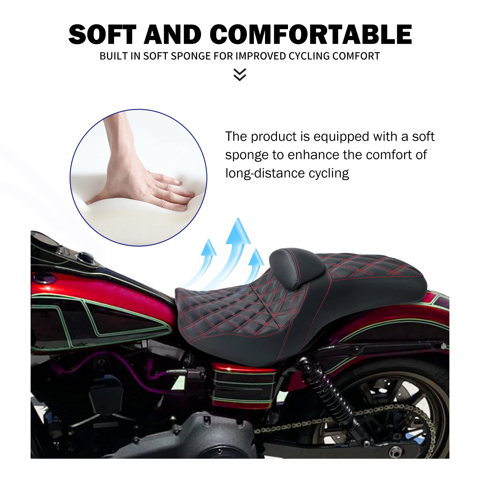 - > Assento duplo para motocicleta com encosto, almofadas para selim do passageiro, assento para harley dyna low rider fat bob street bob 06-2017