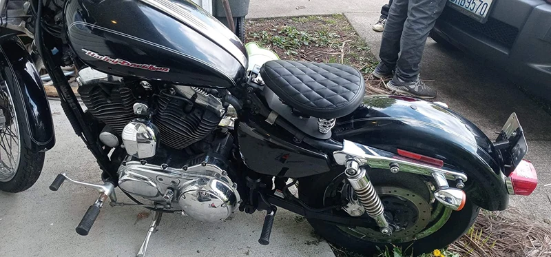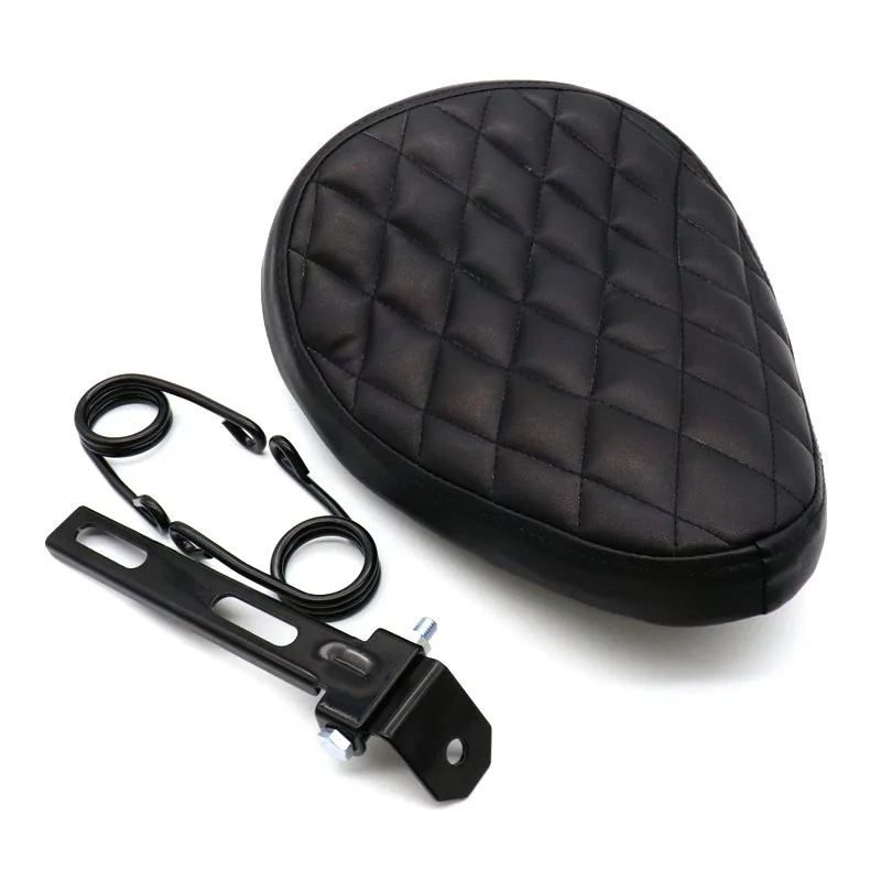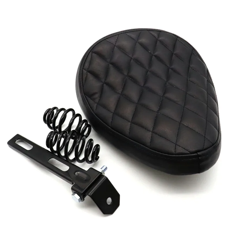 - > Assento solo retrô de couro preto para motocicleta, assento solo de velha escola + suporte giratório de mola de 3 "para harley personalizado chopper bobber