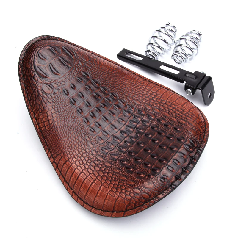 - > Assento solo retrô de jacaré para motocicleta, assento solo de couro para harley chopper bobber, honda yamaha xs650 marrom/preto
