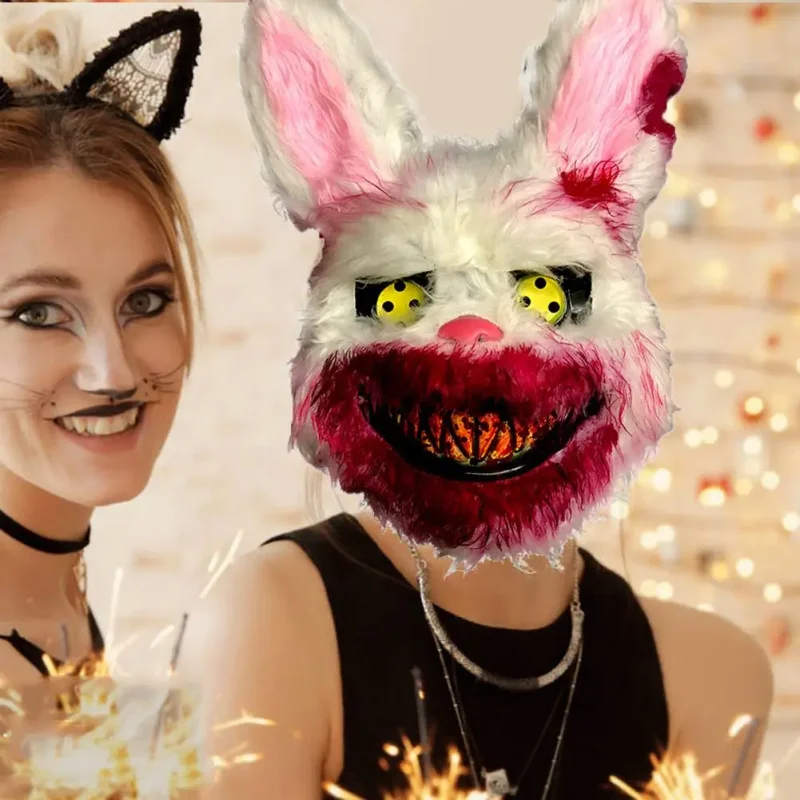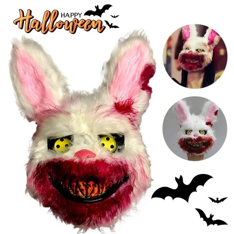 Assustador Urso Coelho Cosplay Máscara Facial, Maquiagem de Festa de Halloween, Capa de Cabeça Animal Cartoon, Fantasia de Carnaval, Masquerade Prop