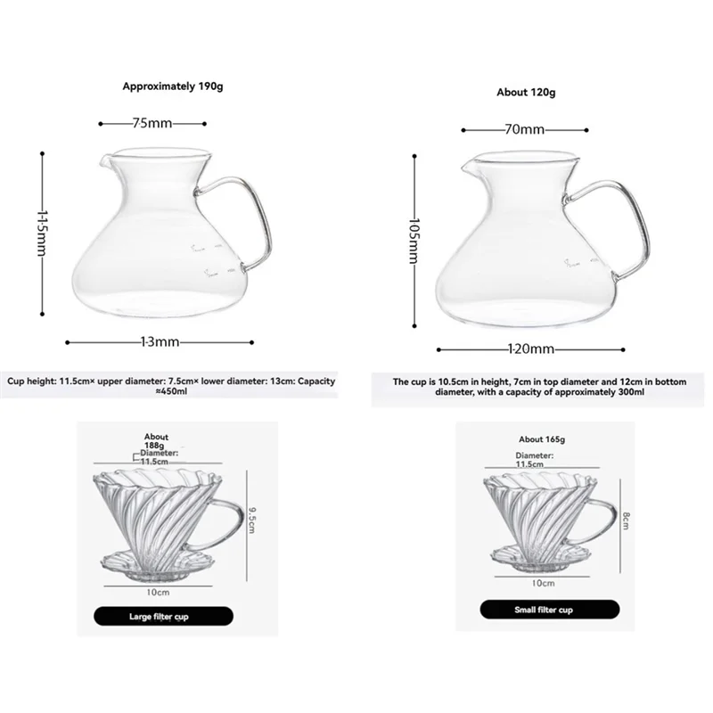 Conjunto completo de café: Este kit de café para servir inclui um gotejador de filtro de café de vidro, servidor de café Projetado para atender às necessidades refinadas dos entusiastas do café, este conjunto garante uma experiência de café artesanal premium em casa ou no escritório.