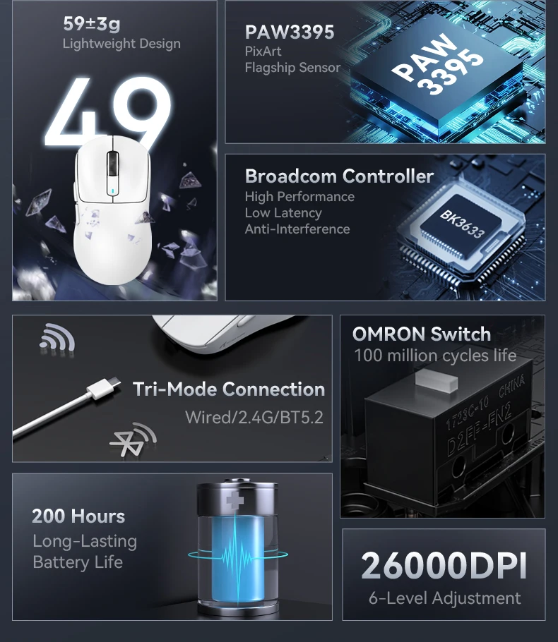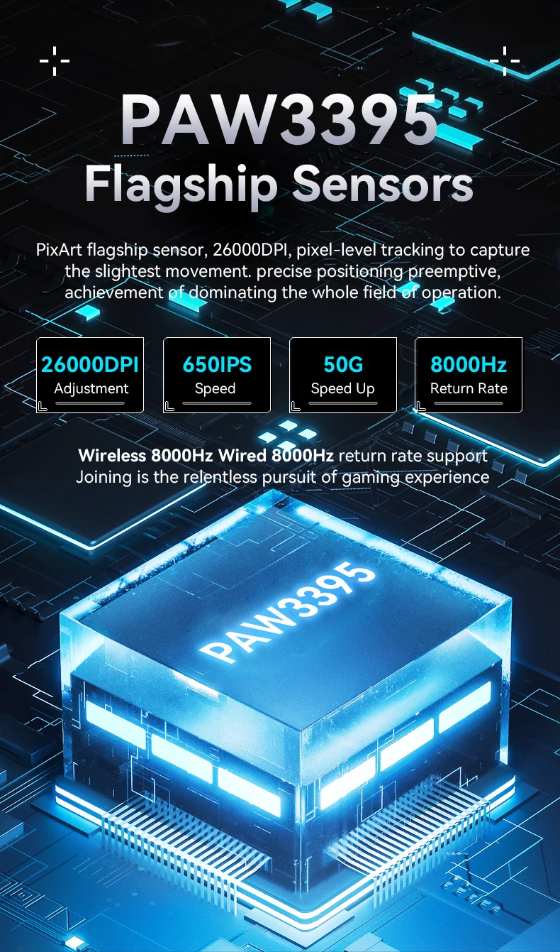 O modelo de Sensor de: Pixart 3395 (26000 DPI | 650 IPS | 50G)