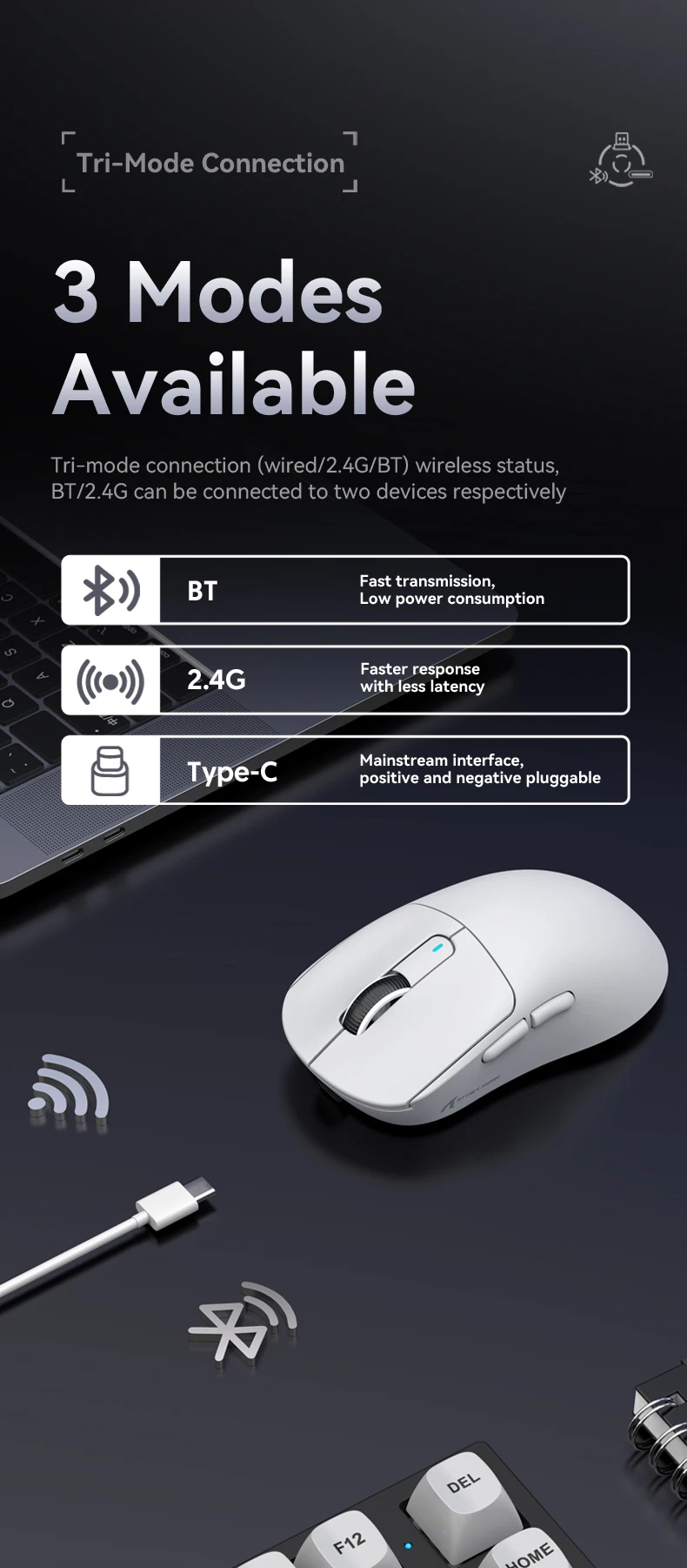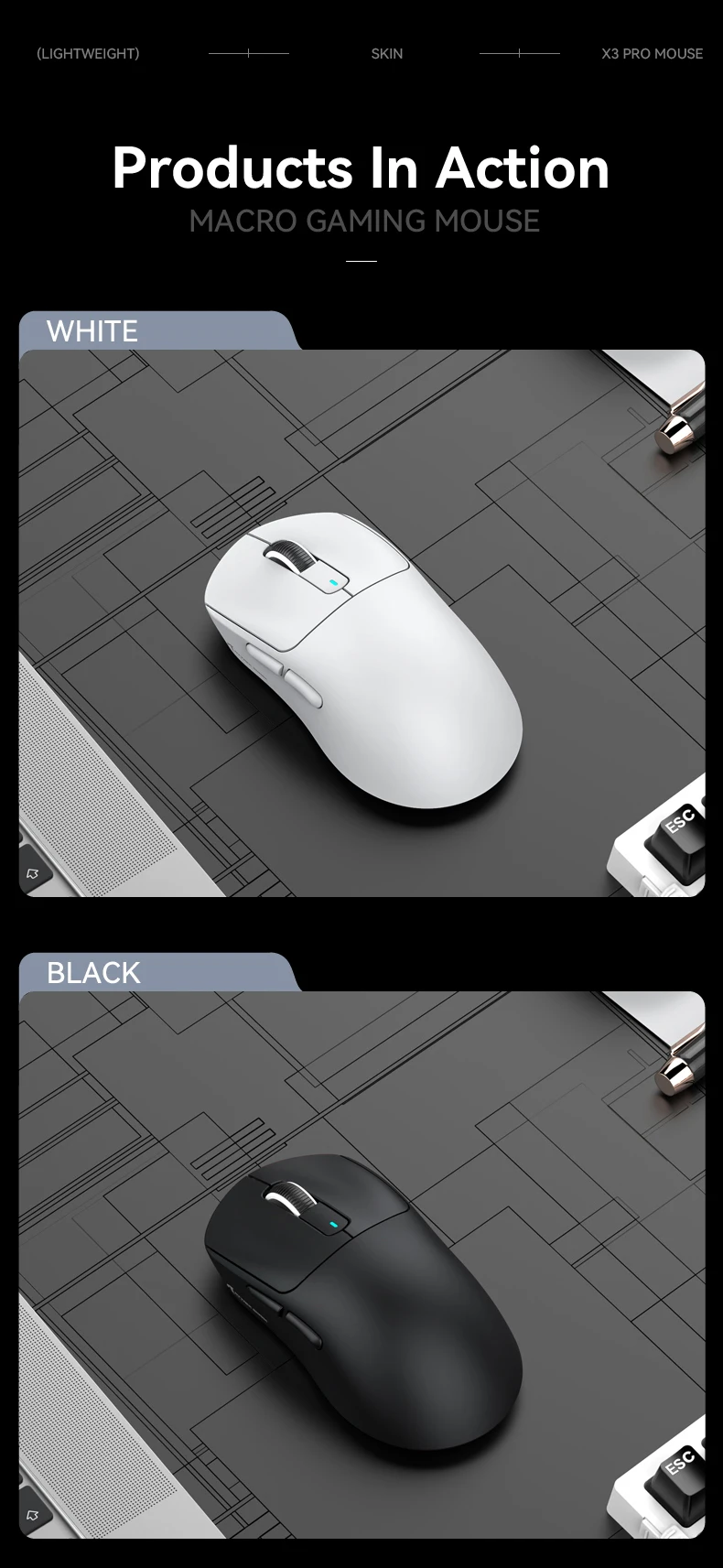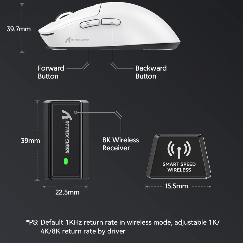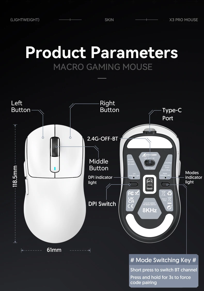 - > Attack Shark X3orX3Pro PixArt 1K/4K leve, mouse para jogos macro sem fio de 3 modos, 26K DPI PAW3395, adequado para laptop/Win/Mac