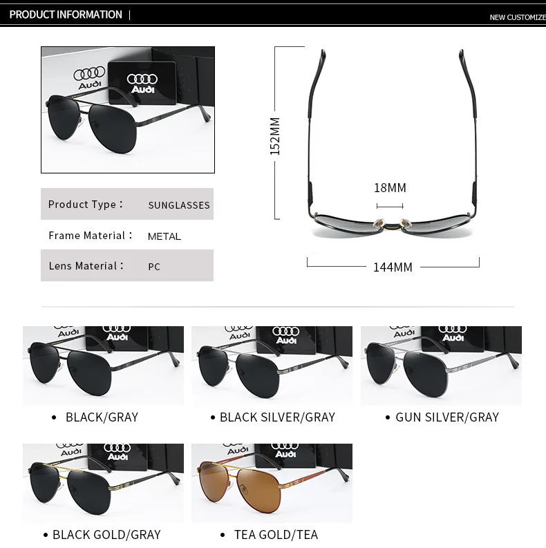 - > Audi uv400 polarizado antirreflexo retro vôo óculos de sol para motocicleta clássico sapoye ao ar livre óculos das mulheres dos homens 558