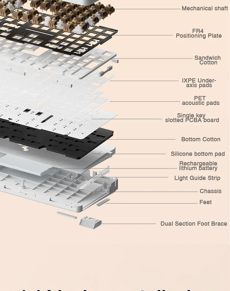 Slotting PCB de chave única de 1,2 mm, comparável à configuração do processo de nível mil dólares, o design é melhor otimizado para consistência e, ao mesmo tempo, pode garantir um jogo suave.