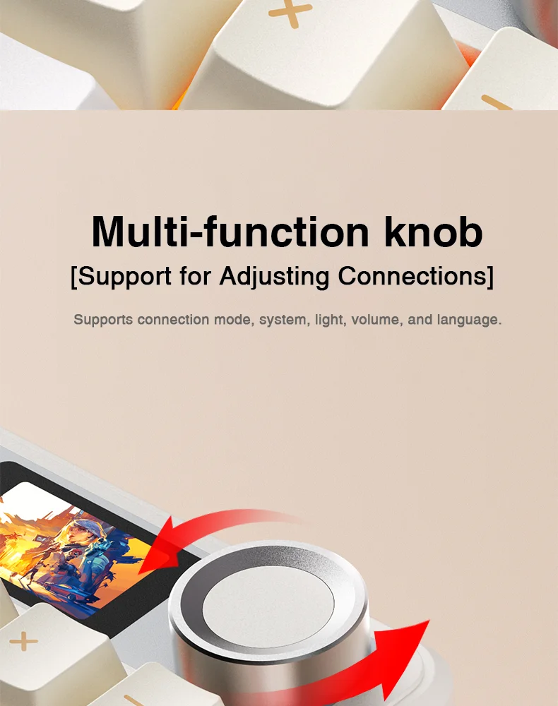 - > AULA F108 pro Teclado sem fio Bluetooth Macro Gaming teclado Junta Hot-swap Teclado de tamanho completo com display inteligente TFT