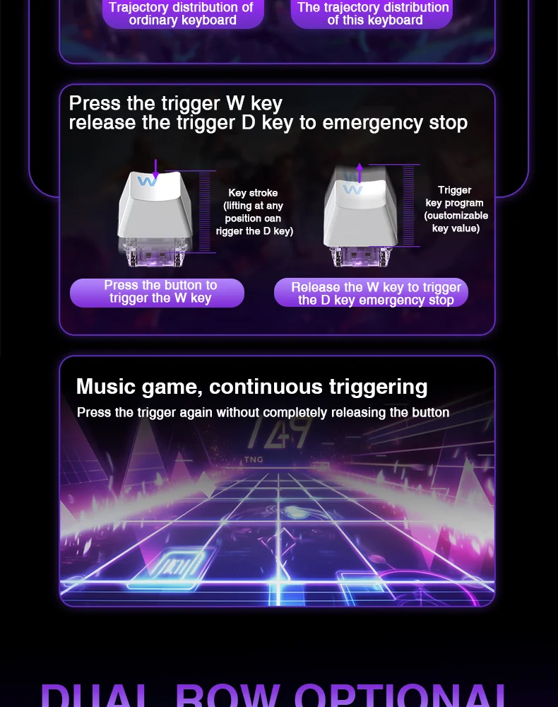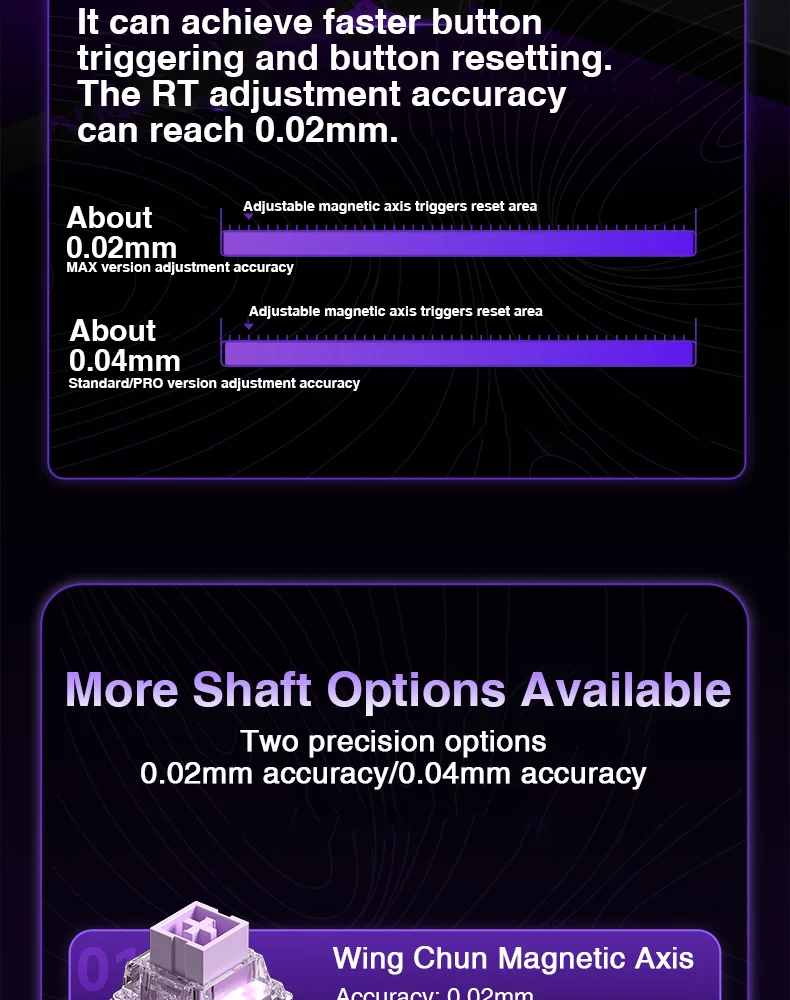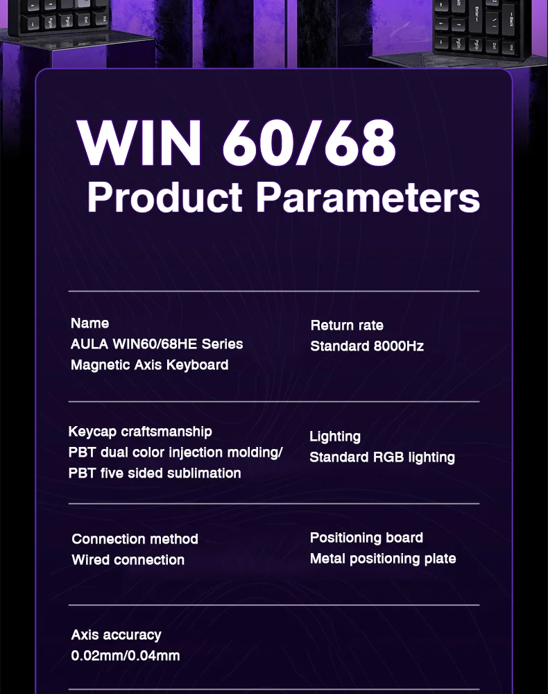 Com os interruptores WIN60 HE, WIN68 HE Wing chun, você pode experimentar um tempo de resposta incomparável, ele foi projetado para ações de gatilho rápidas em jogos competitivos.