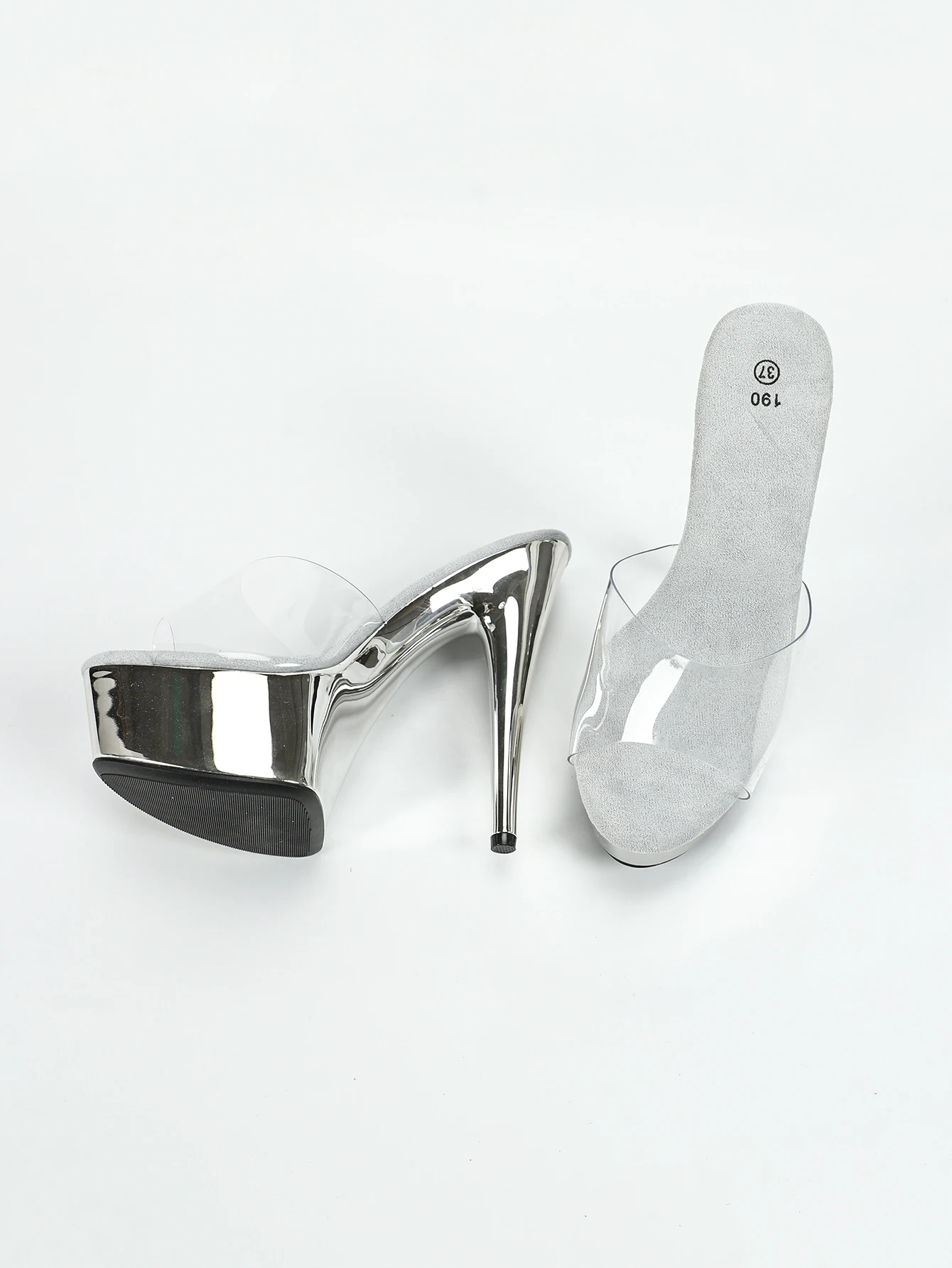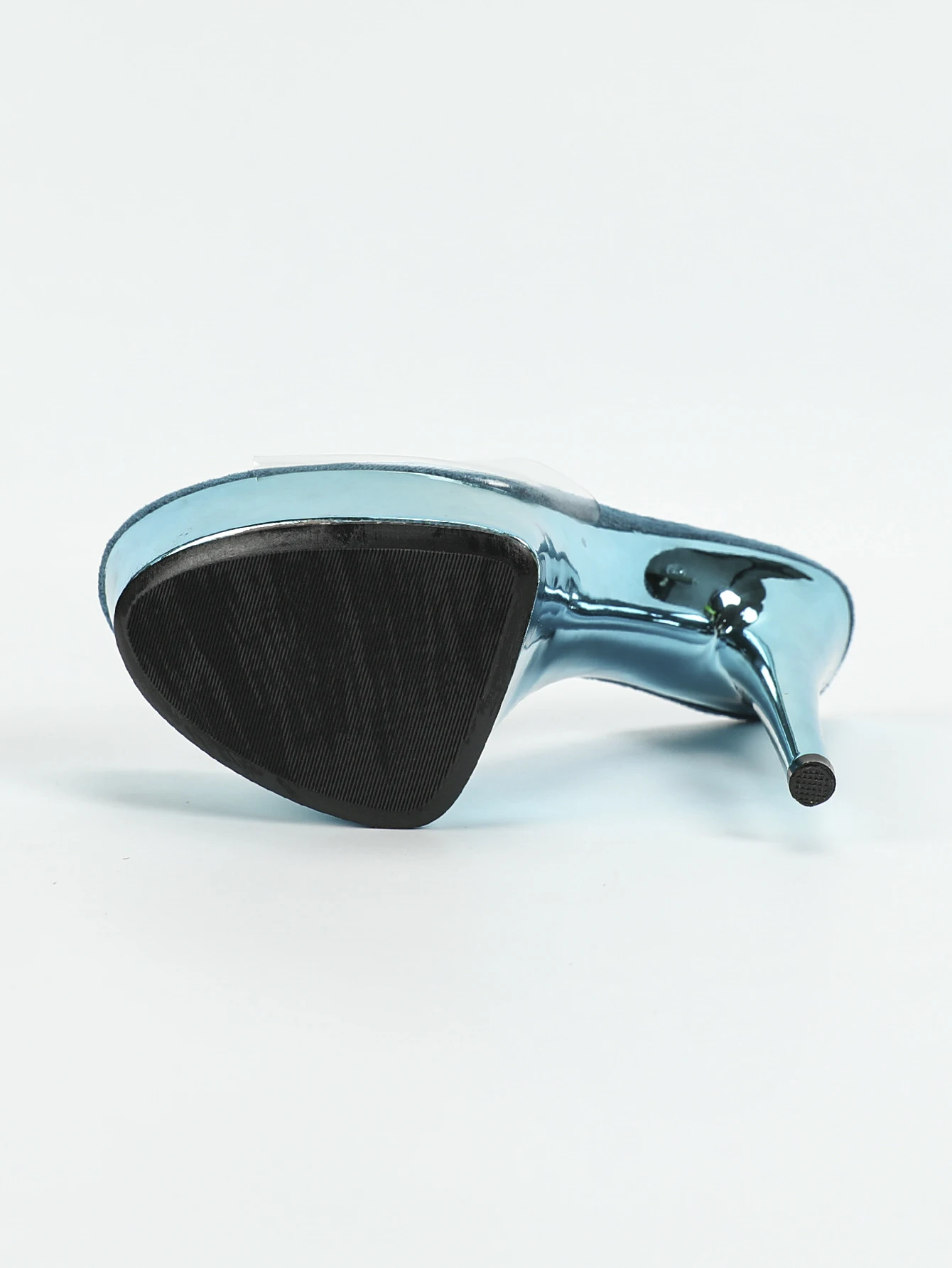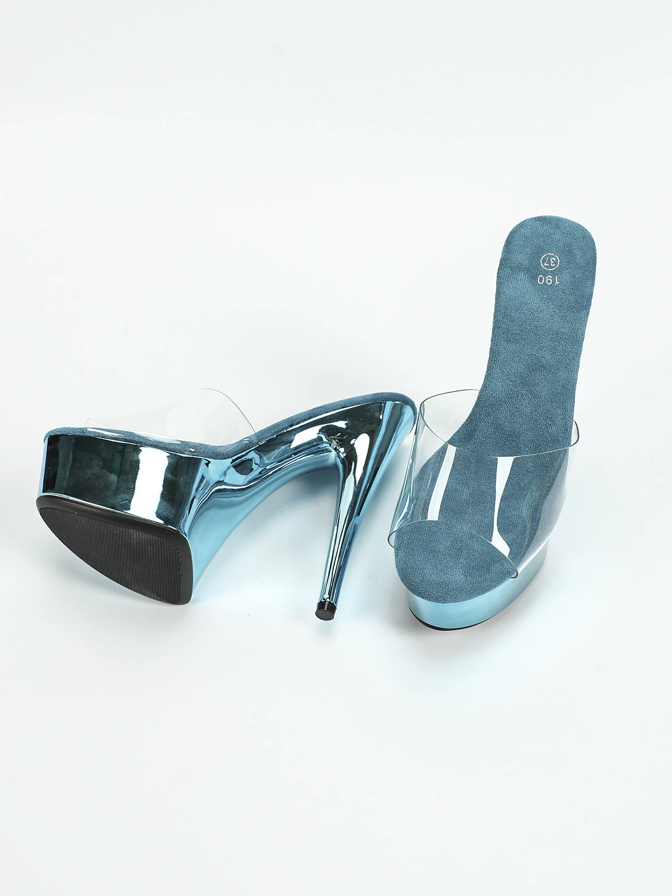 Azul brilho chapeamento 15cm 6 polegadas verão feminino chinelos plataforma sandálias sexy modelo exótico pólo sapatos de dança tira saltos de festa