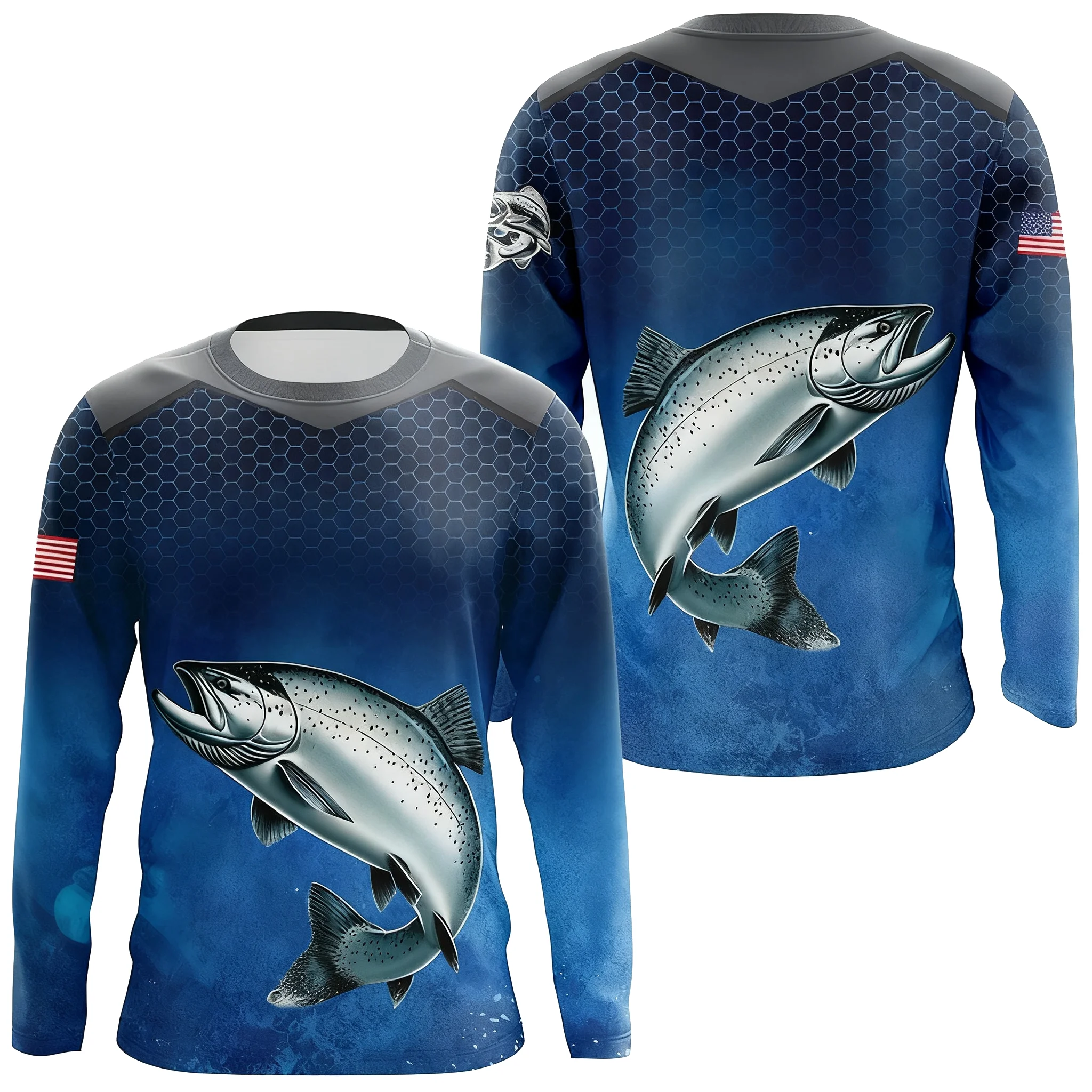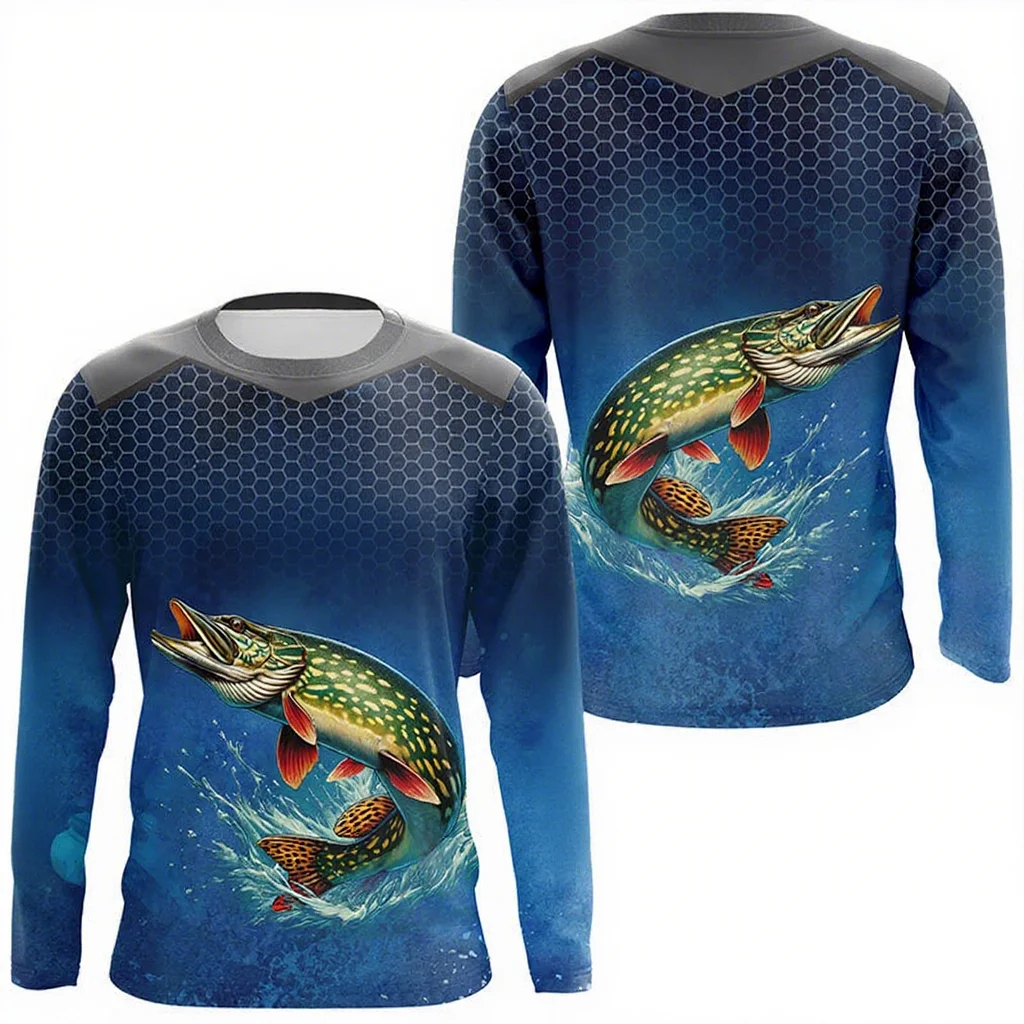 Azul camuflagem peixe-gato pesca em torno do pescoço roupas de pesca manga curta impressão casual respirável de secagem rápida absorvente de suor