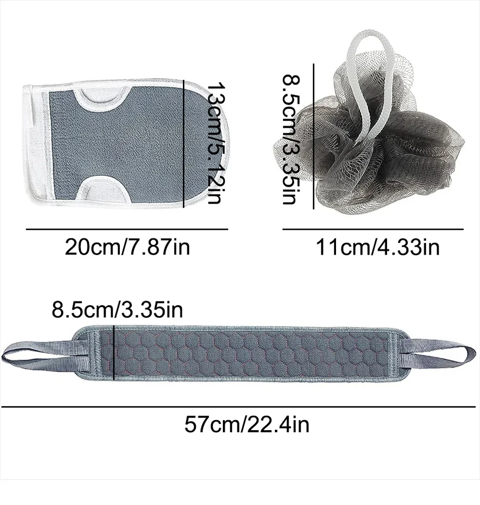 Back Scrubber Bath Glove Set, Escova de chuveiro, Esfoliante Scrub, Esponja Loofah, Remoção de pele morta, Ferramentas de banho, 3Pcs Set