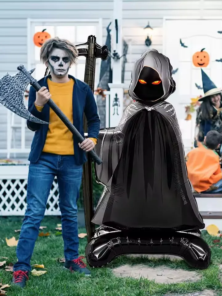 Balão grim reaper em pé, decoração de terror de Halloween, decoração de casa embrujada graveyard, decoração de festa temática de Halloween