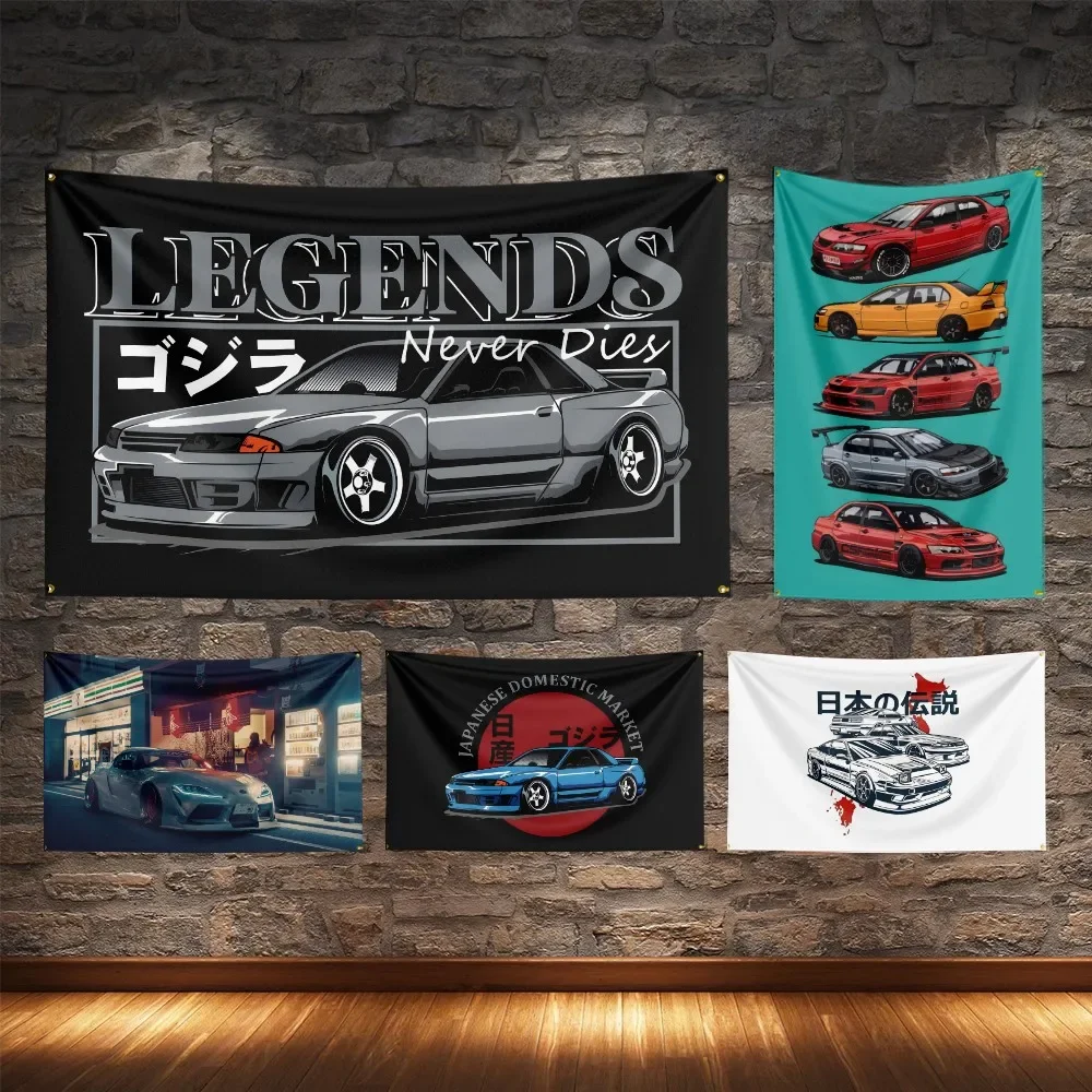 Bandeira japonesa do carro da lenda JDM poliéster impressão digital super carro de corrida banner para decoração