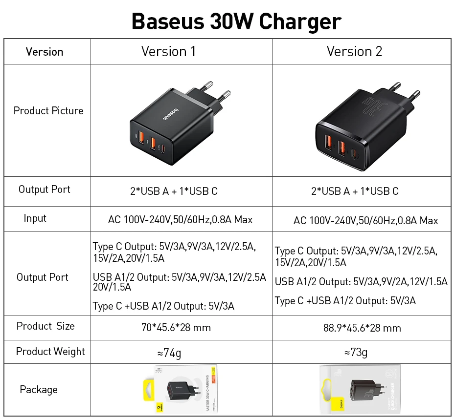 Nota:Existem atualmente duas versões do carregador de 20W, a comparação é a seguinte. A versão 1 ou 2 é entregue aleatoriamente.