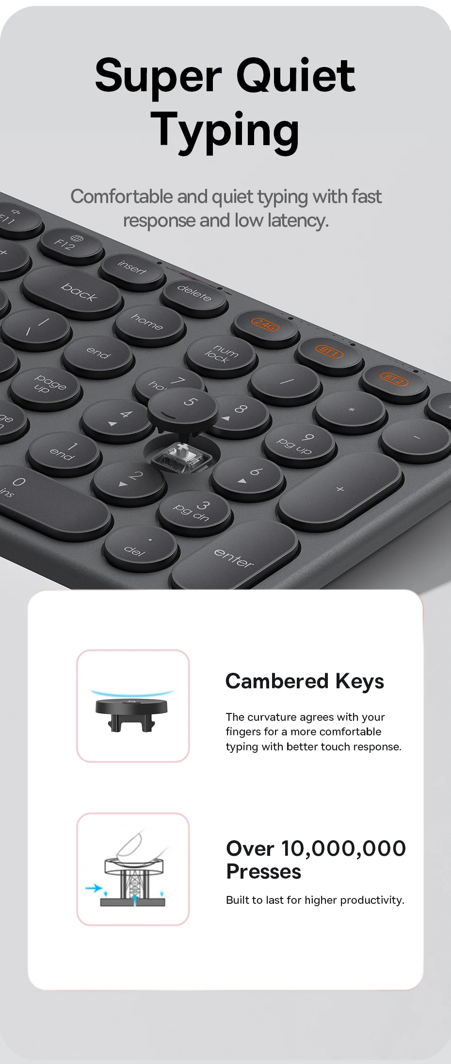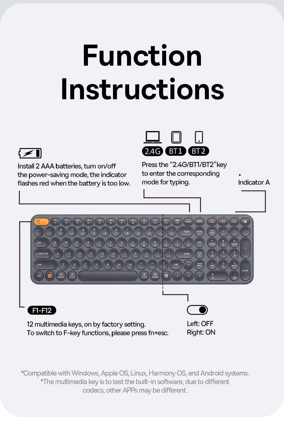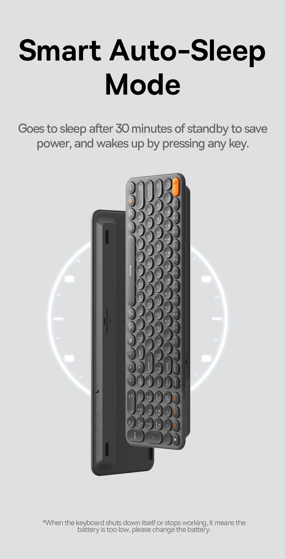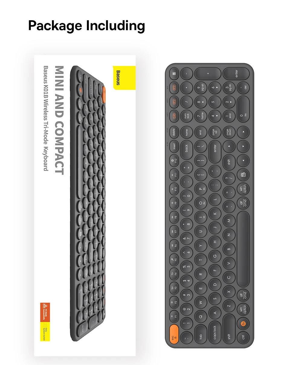 - > Baseus-Teclado Ergonômico Sem Fio, 2.4G, Bluetooth 5.0, Keycap Numérico, Office Game, Tablet, PC, iPad, MacBook, Laptop