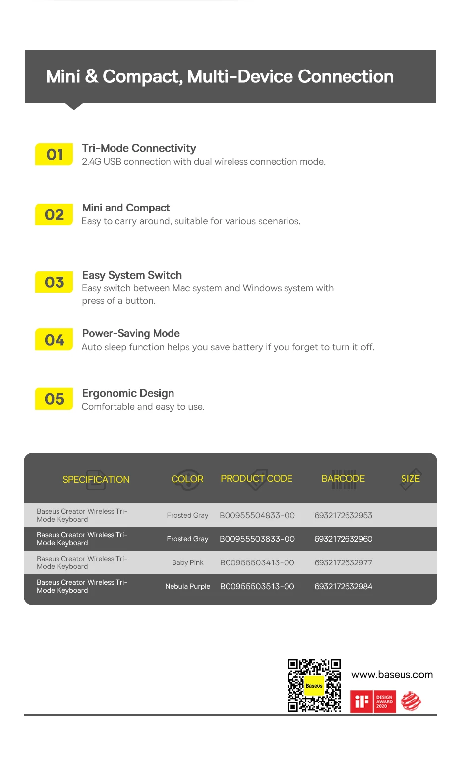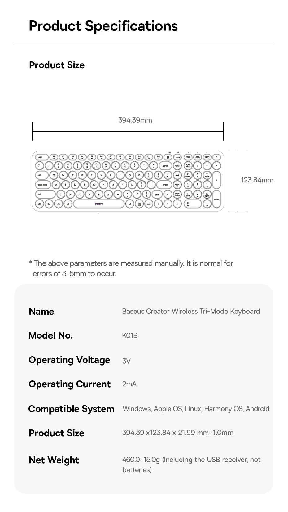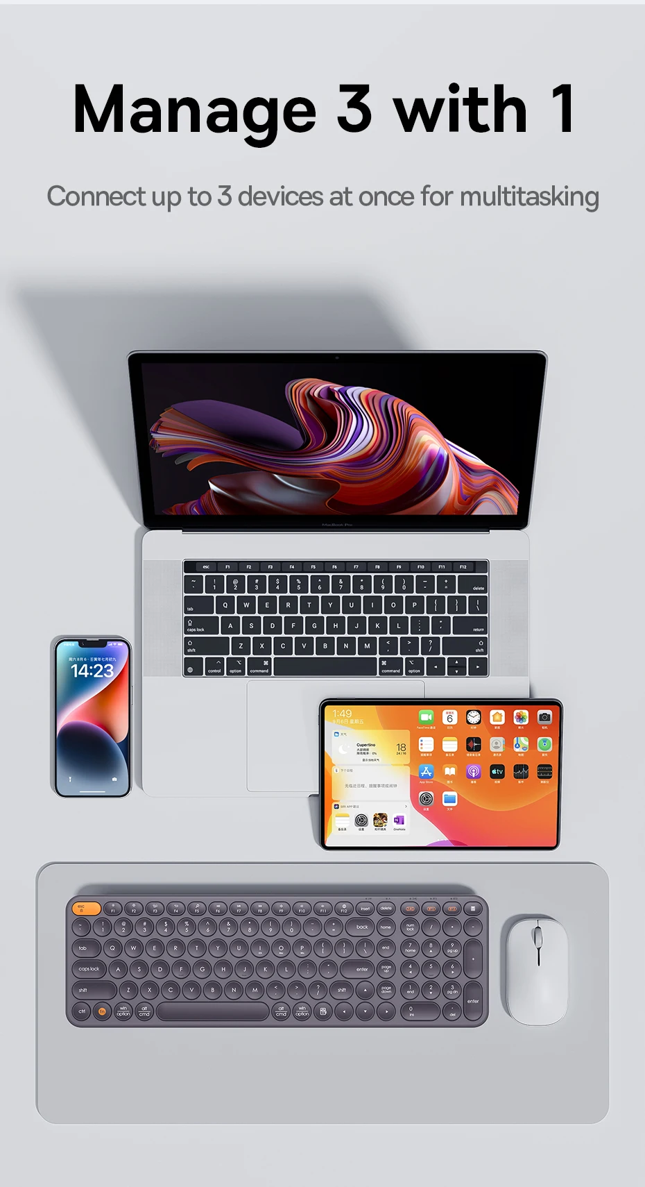 - > Baseus-Teclado Ergonômico Sem Fio, 2.4G, Bluetooth 5.0, Keycap Numérico, Office Game, Tablet, PC, iPad, MacBook, Laptop