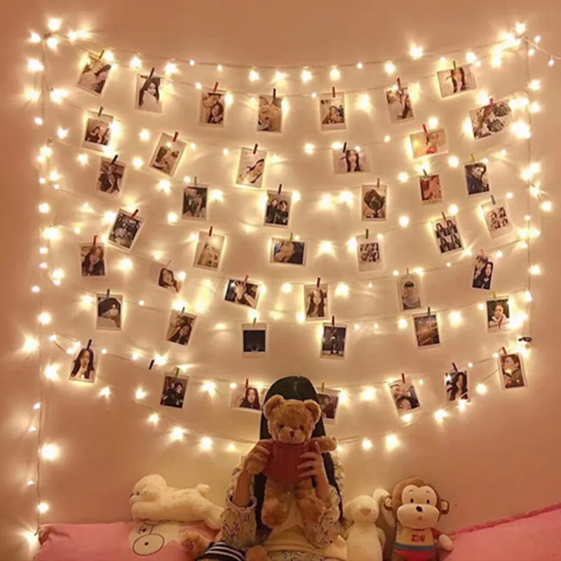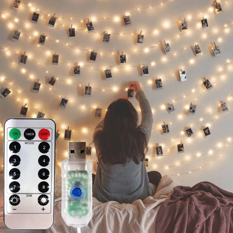 Bateria USB operado LED String Lights, Photo Clip, Fairy Lights, ao ar livre, árvore de Natal, decoração da guirlanda, decoração do casamento, 2m, 5m, 10m