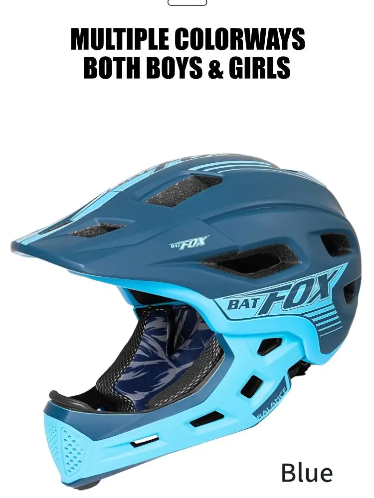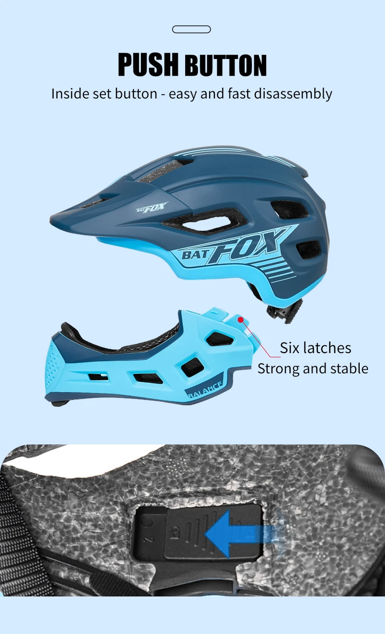 Batfox capacete facial completo crianças destacável segurança ciclismo bicicleta skate patinação scooter joelheiras conjunto crianças capacetes de bicicleta