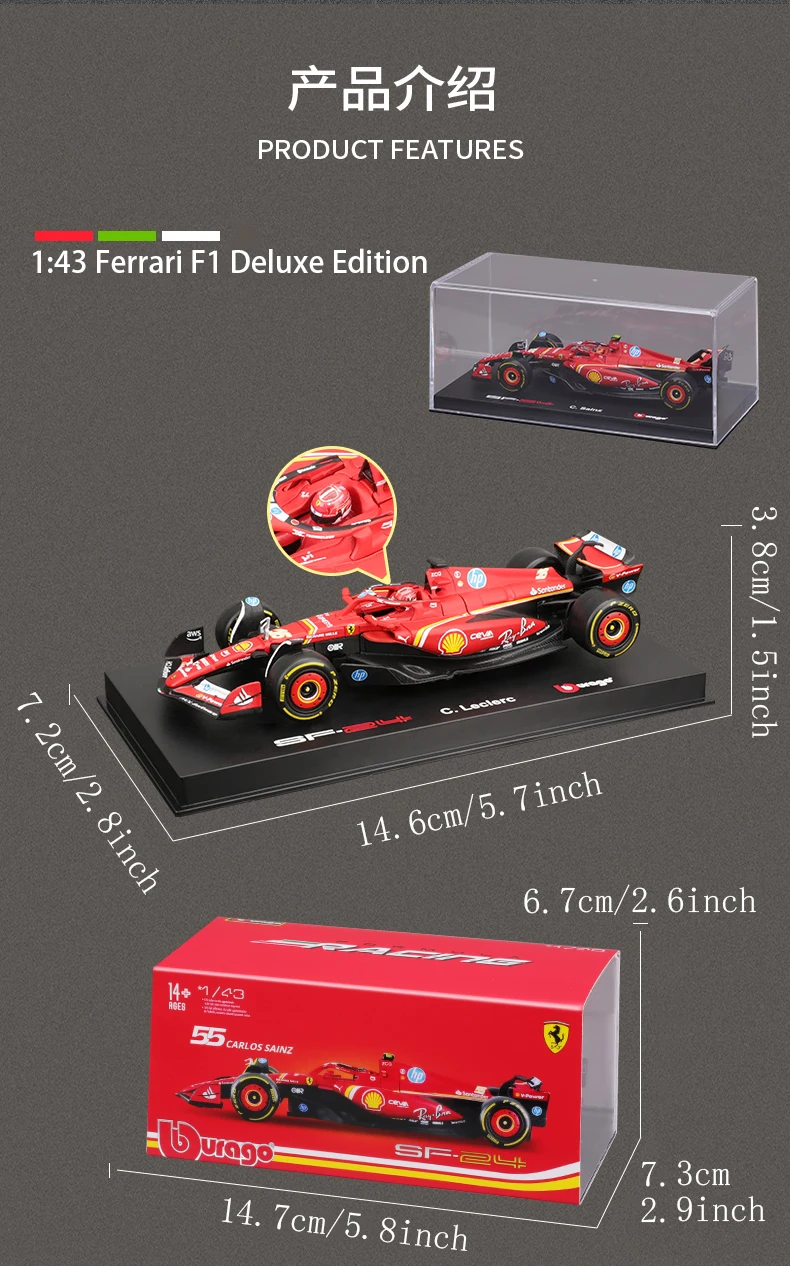 Bburago 1:43 2024 2023 F1 Scuderia Ferrari SF24 SF23 # 16 lecler # 55 sainz jr liga carro de luxo fundido modelo de carro série de brinquedos
