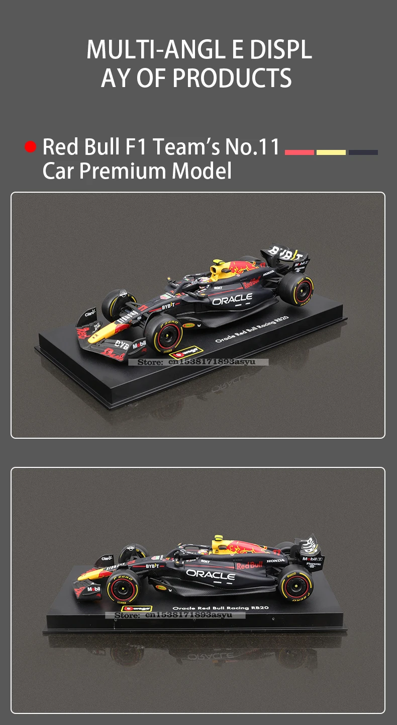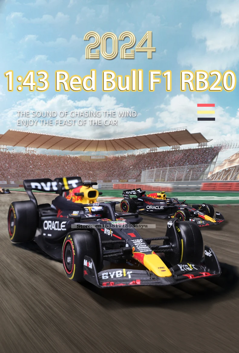 Bburago 1:43 2024 RB20 F1 Red Bull Racing TAG Heuer 2023 RB19 Miami # 1 Verstappen # 11 Brinquedo modelo fundido para carro em liga Perez
