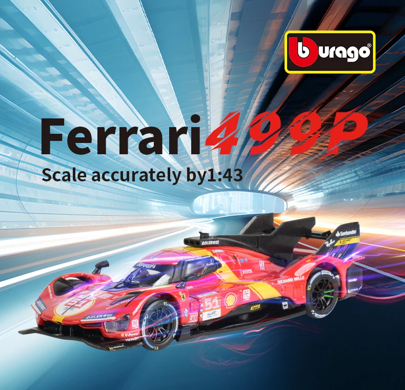 Bburago 1:43 Ferrari 499P LMH (2023 24H LE MANS CHAMPION) Veículos estáticos fundidos modelo colecionável brinquedos de carro de corrida