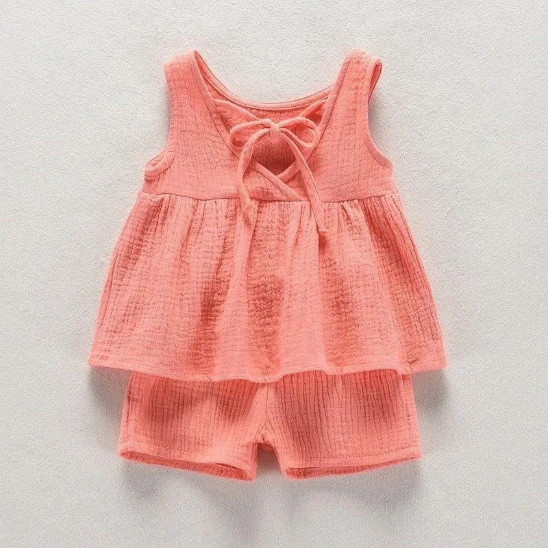- > Bebê meninas roupas de verão musselina algodão sem mangas colete vestido shorts camisa ternos moda topo + calças conjuntos 2 pçs 0-4t m