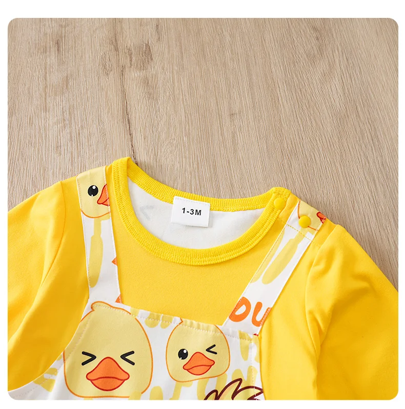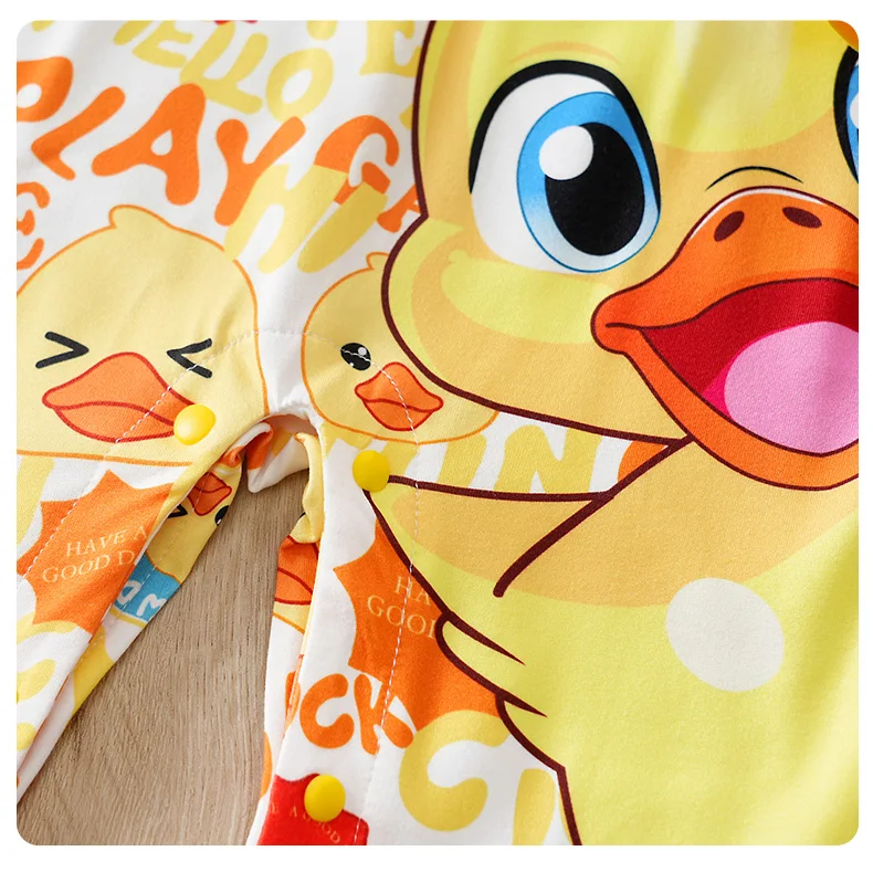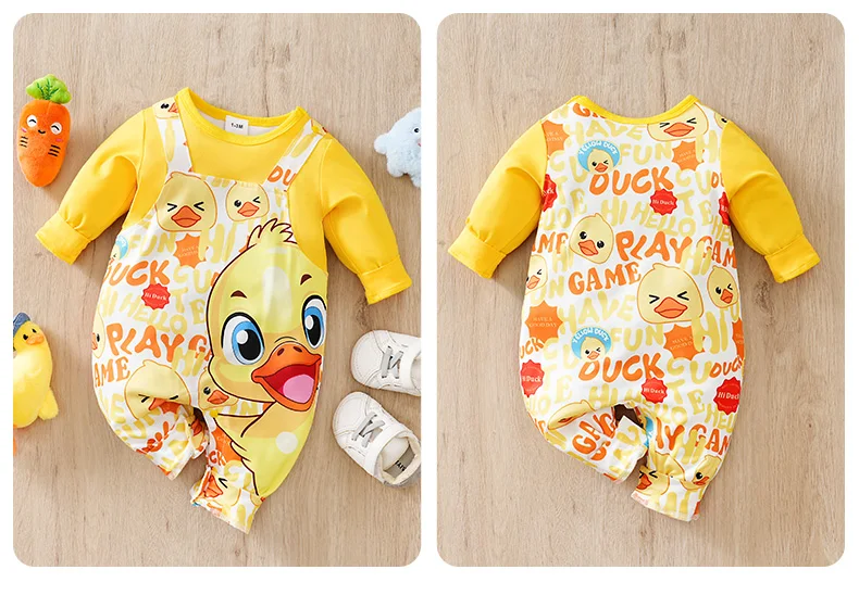 Bebê meninos meninas dos desenhos animados pato amarelo outono manga longa macacão infantil da criança recém-nascido 0-18 meses quente macio aconchegante