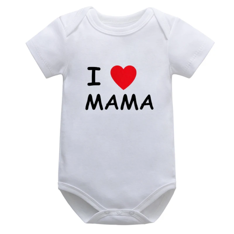 - > Bebê meninos meninas macacão de algodão manga curta carta impressão eu amo mãe & pai macacão roupas infantis recém-nascidos traje roupas do bebê