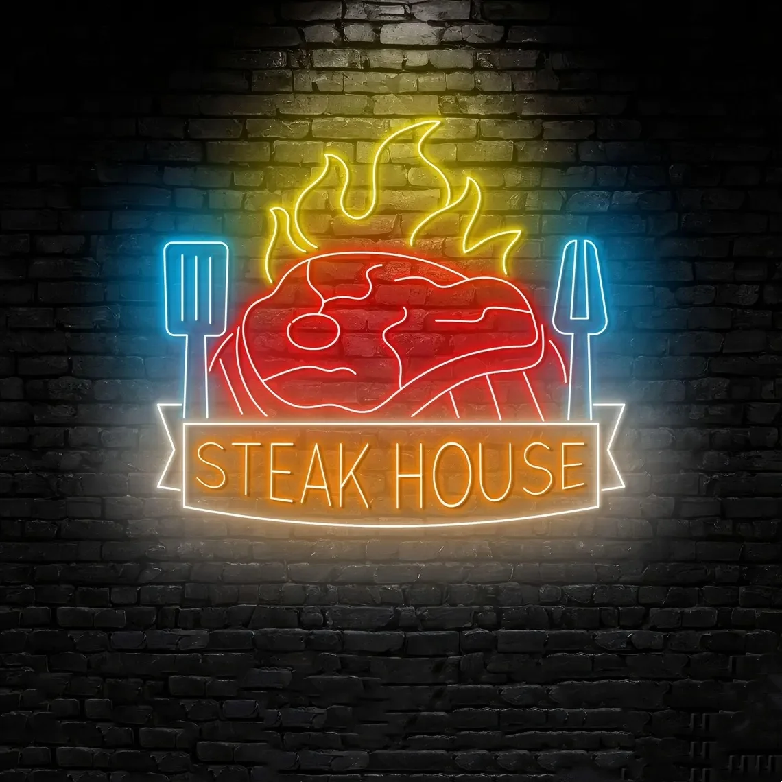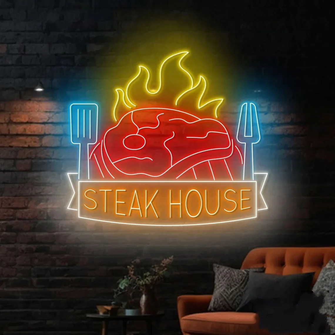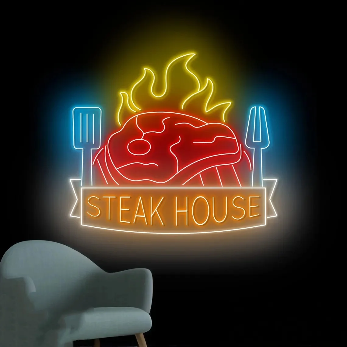 Bife casa churrasco sinal de néon churrasco aberto led sinal grill carne luz néon restaurante arte da parede cozinha casa decoração da parede