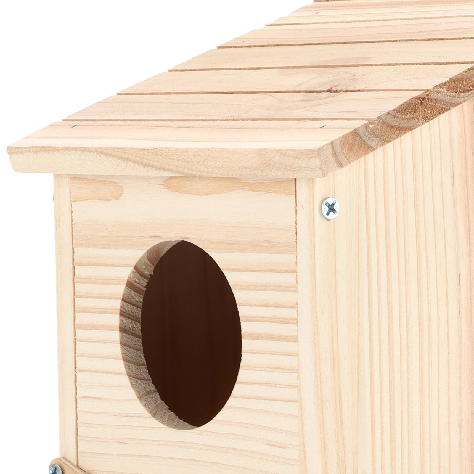 1.É feito de toras naturais, com textura dura, textura clara e fragrância natural de madeira e polido meticulosamente, sem rebarbas, e não prejudica pessoas e pássaros.2.O telhado da caixa de criação de pássaro adota um design inclinado, e a água da chuva no telhado inclinado pode fluir a tempo de manter a pássaro seca durante períodos úmidos.