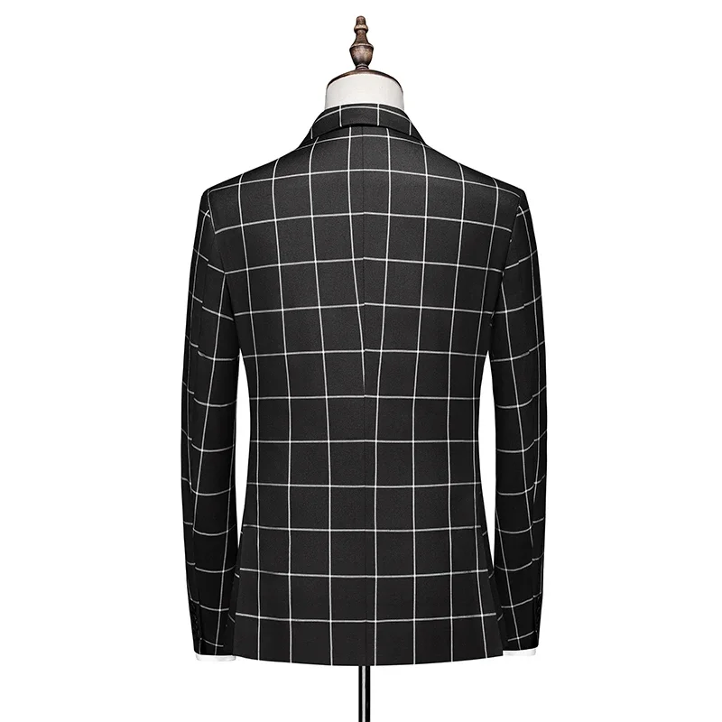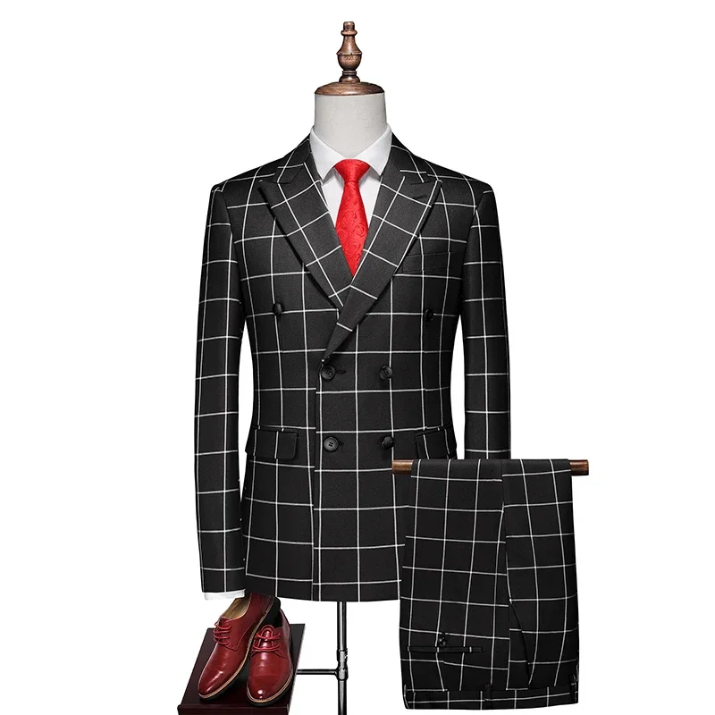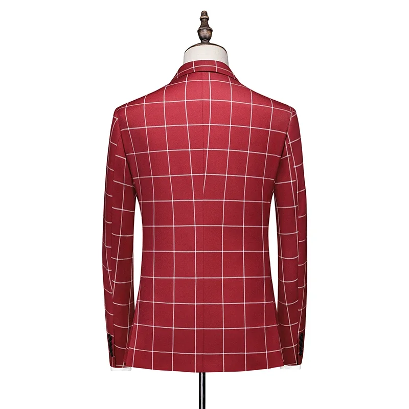 - > (Blazer + calça + colete) masculino luxo formal ternos de casamento moda masculina negócios social baile festa duplo breasted vestido xadrez 3 peça