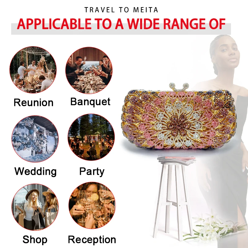 - > Bolsa De Diamante Para Mulheres, Saco De Noite, Saco De Jantar, Oco De Cristal, Mão De Strass, Festa De Casamento De Luxo, Presente De Natal, Mais Recente