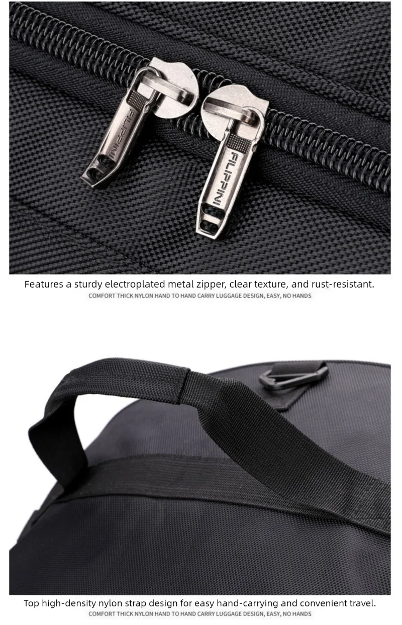 2.Grande capacidade e tamanho generoso: o espaçoso compartimento principal armazena sem esforço roupas, equipamentos esportivos ou equipamentos ao ar livre, enquanto o design de tamanho grande acomoda viagens prolongadas sem exceder os limites comuns de tamanho de bagagem.