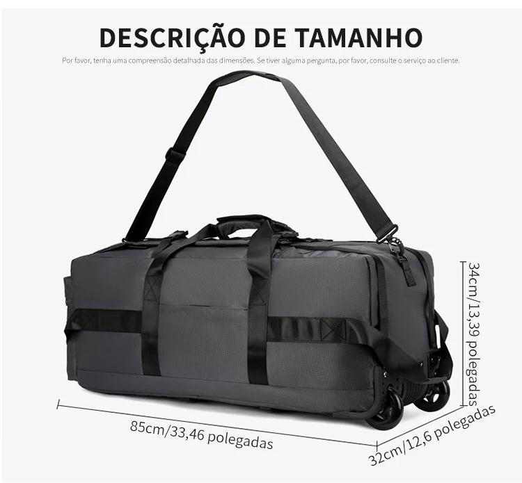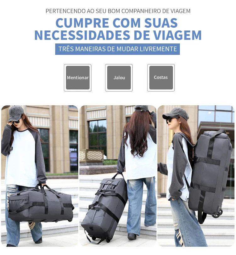 Bolsa de viagem, bolsa de grande capacidade, bagagem portátil ao ar livre, bolsa de viagem com rodas, bolsa de viagem unissex conveniente e prática