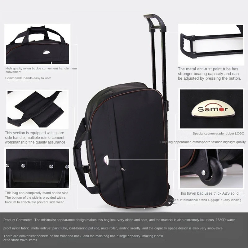 Bolsa de viagem com rodas, bagagem de negócios, bolsa de rodas, mala à prova d'água, moda masculina e feminina, bolsa de viagem