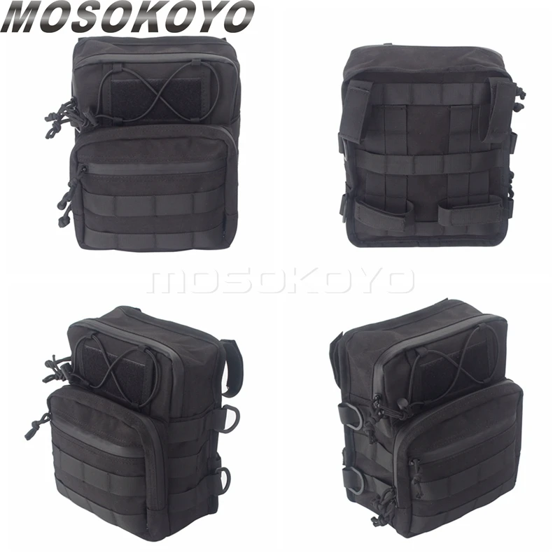 Acessórios MOLLE para pontos de ancoragem universais para fixar a bolsa, bem como para uso em acessórios adicionais.