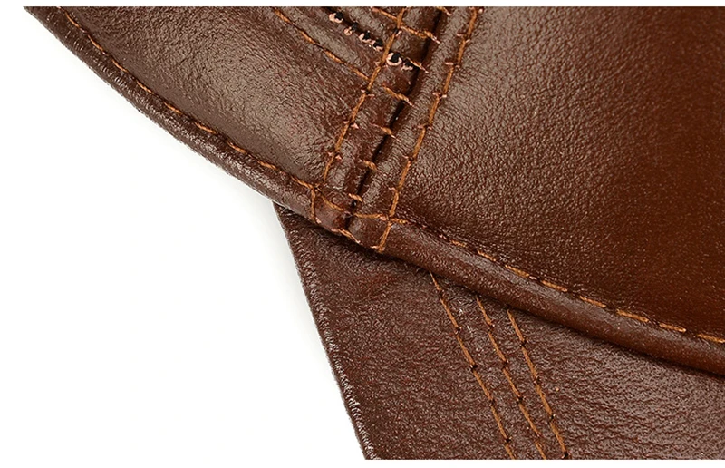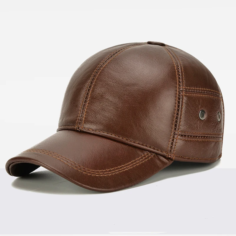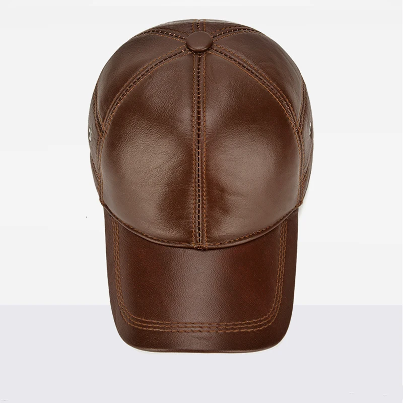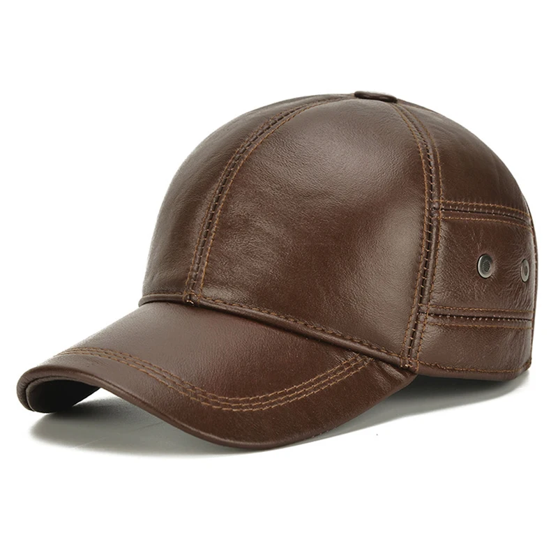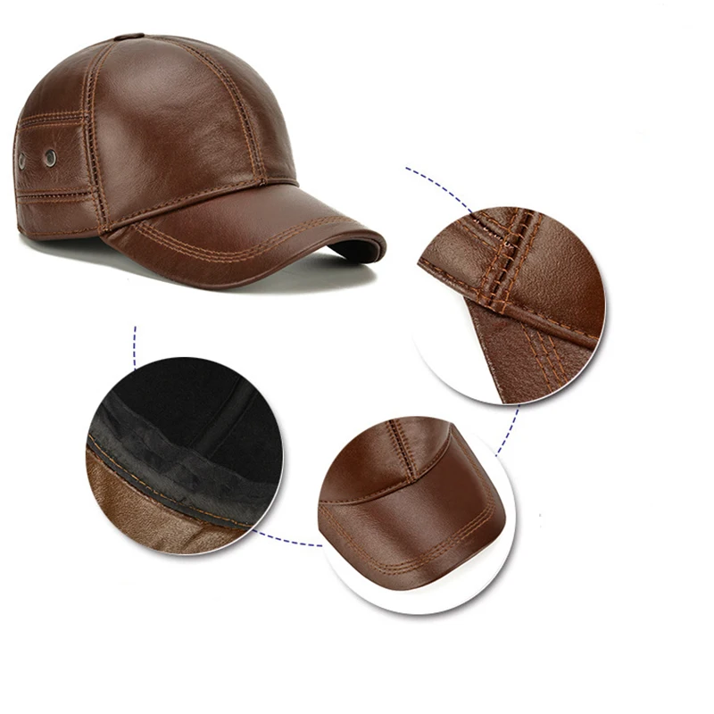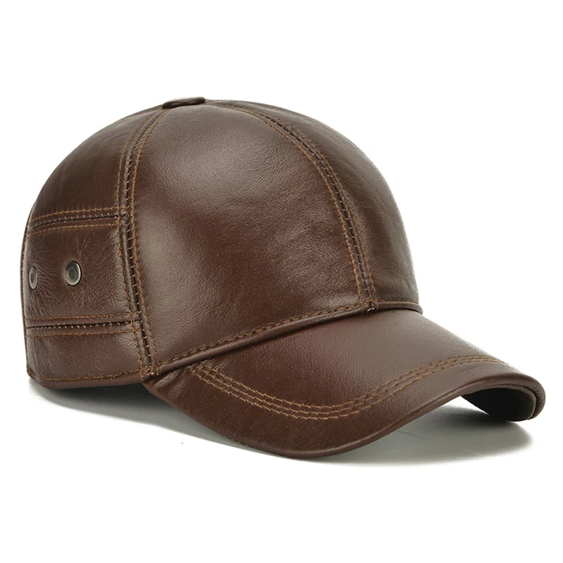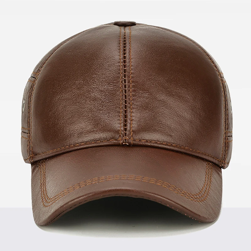 - > Boné de beisebol de couro verdadeiro para homens, boné de couro real, orelha exterior, novo estilo, inverno quente, 2022