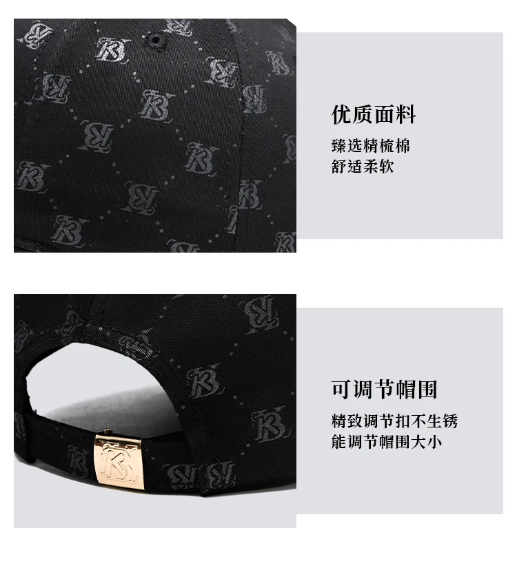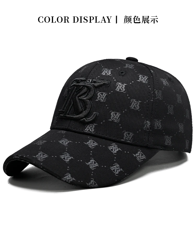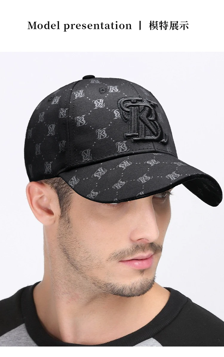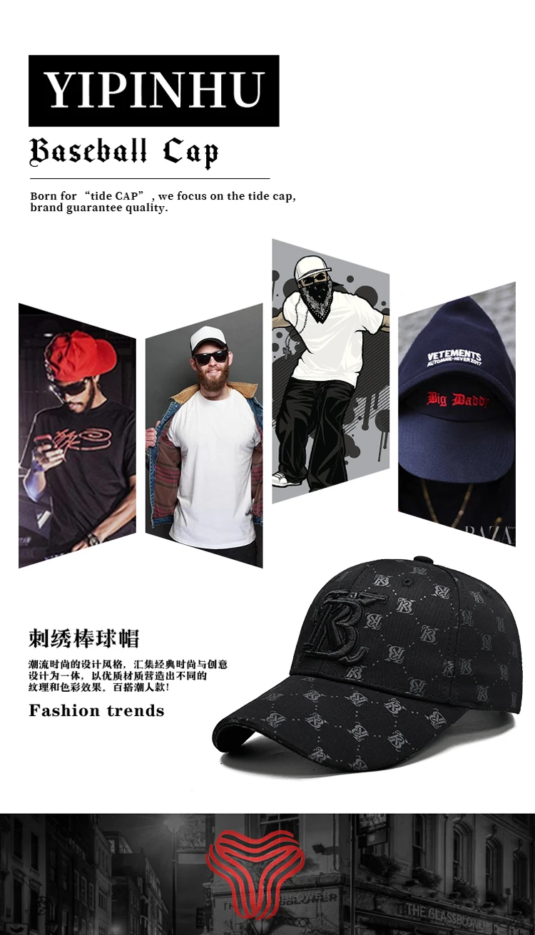 - > Boné de beisebol masculino estampado na moda, todo preto, tudo combina, maré de rua, marca pica, chapéu masculino, verão