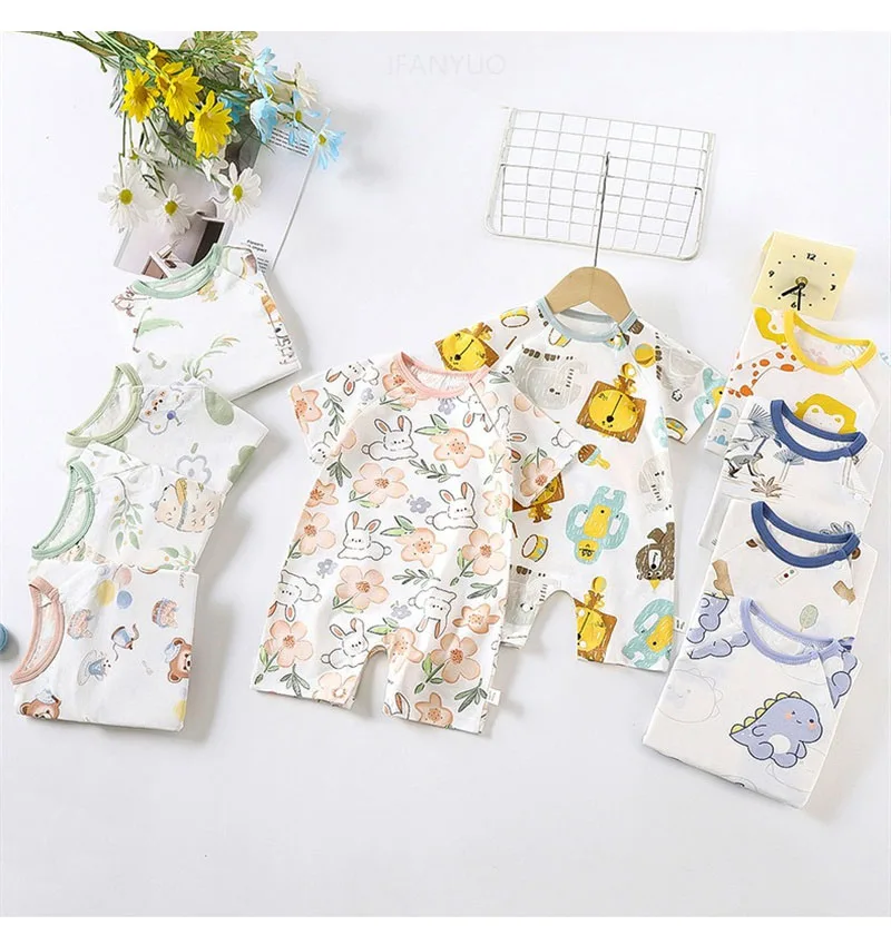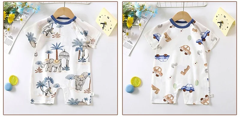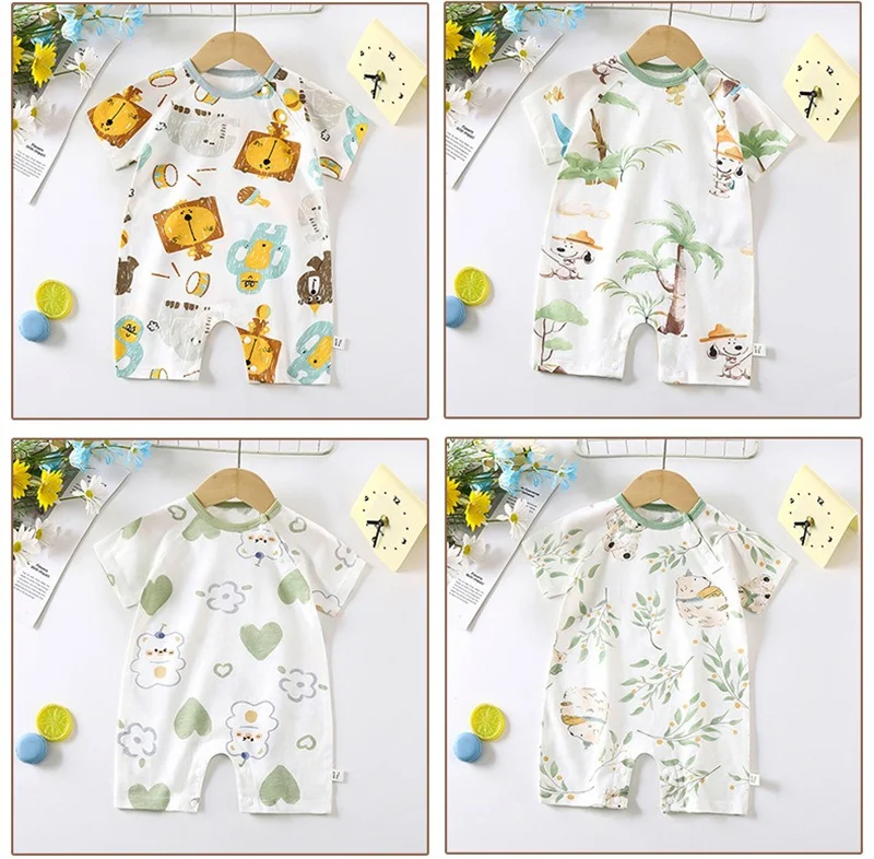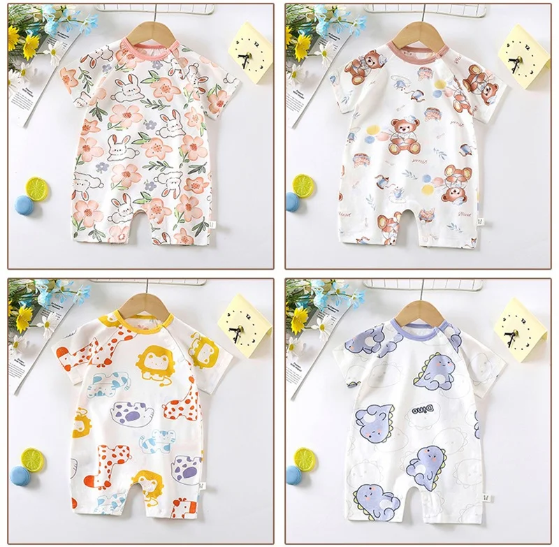 - > Bonito dos desenhos animados do bebê macacão verão de manga curta algodão fino recém-nascido roupas infantis bodysuit meninos meninas rastejando roupas macacão
