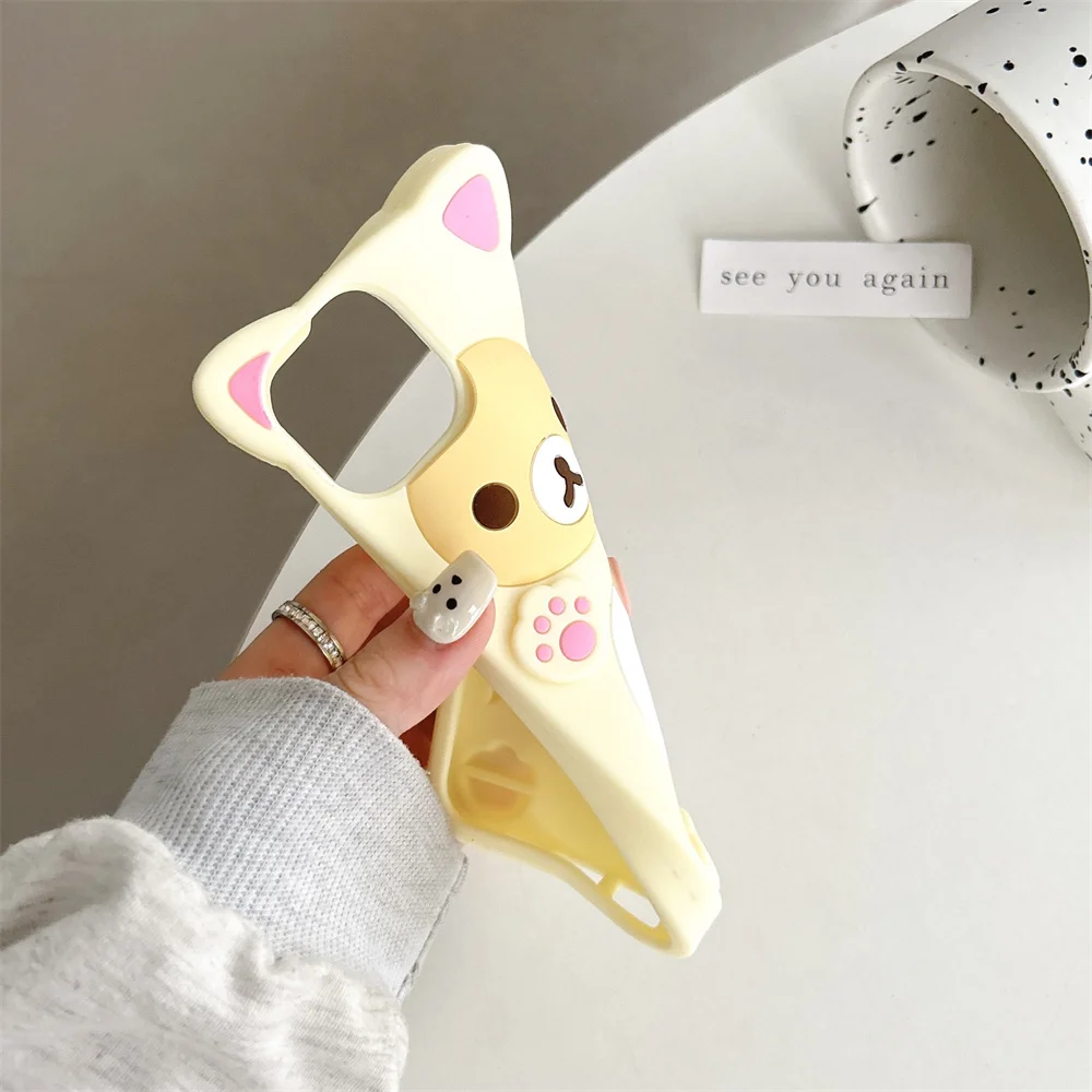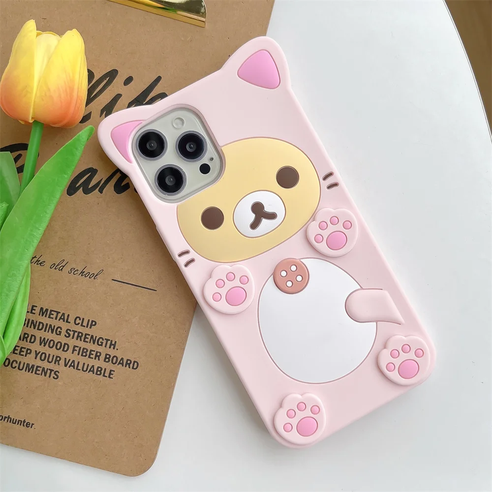 Bonito urso rilakkuma para iphone 17 pro max 16 15 14 13 12 mini 11 pro max xs xr 6 7 8 plus se kawaii gato silicone capa macia