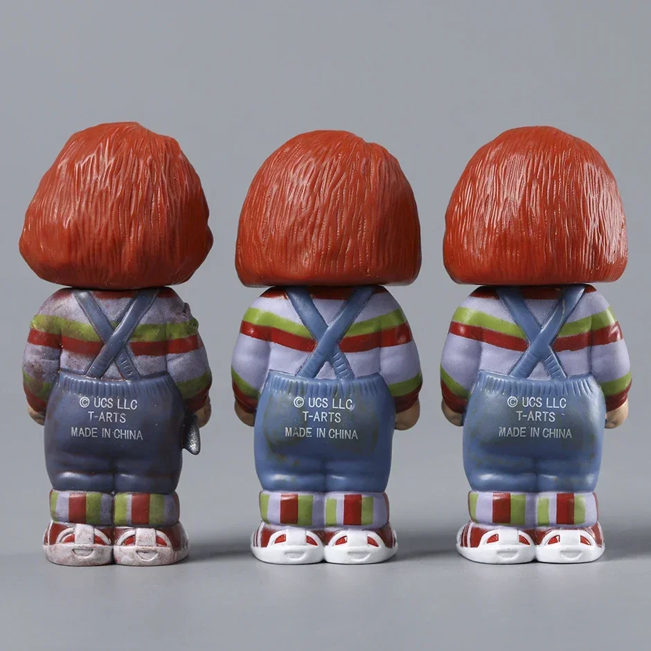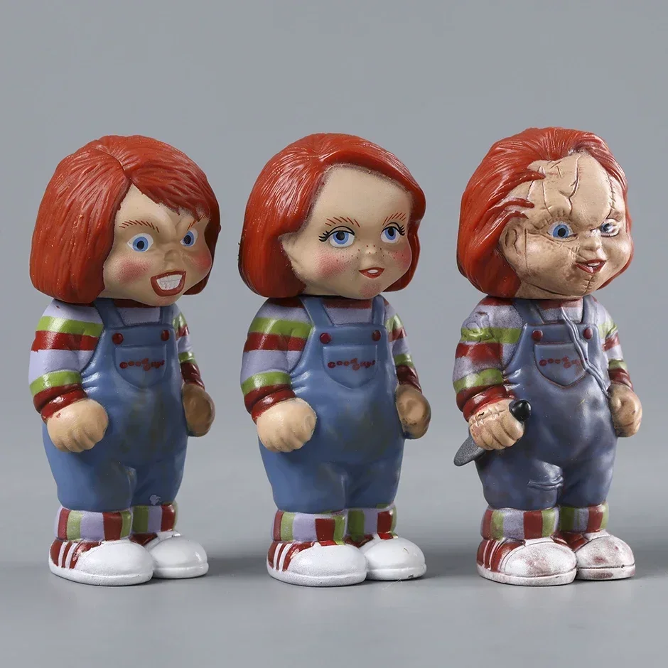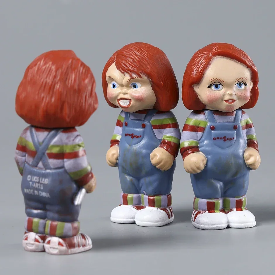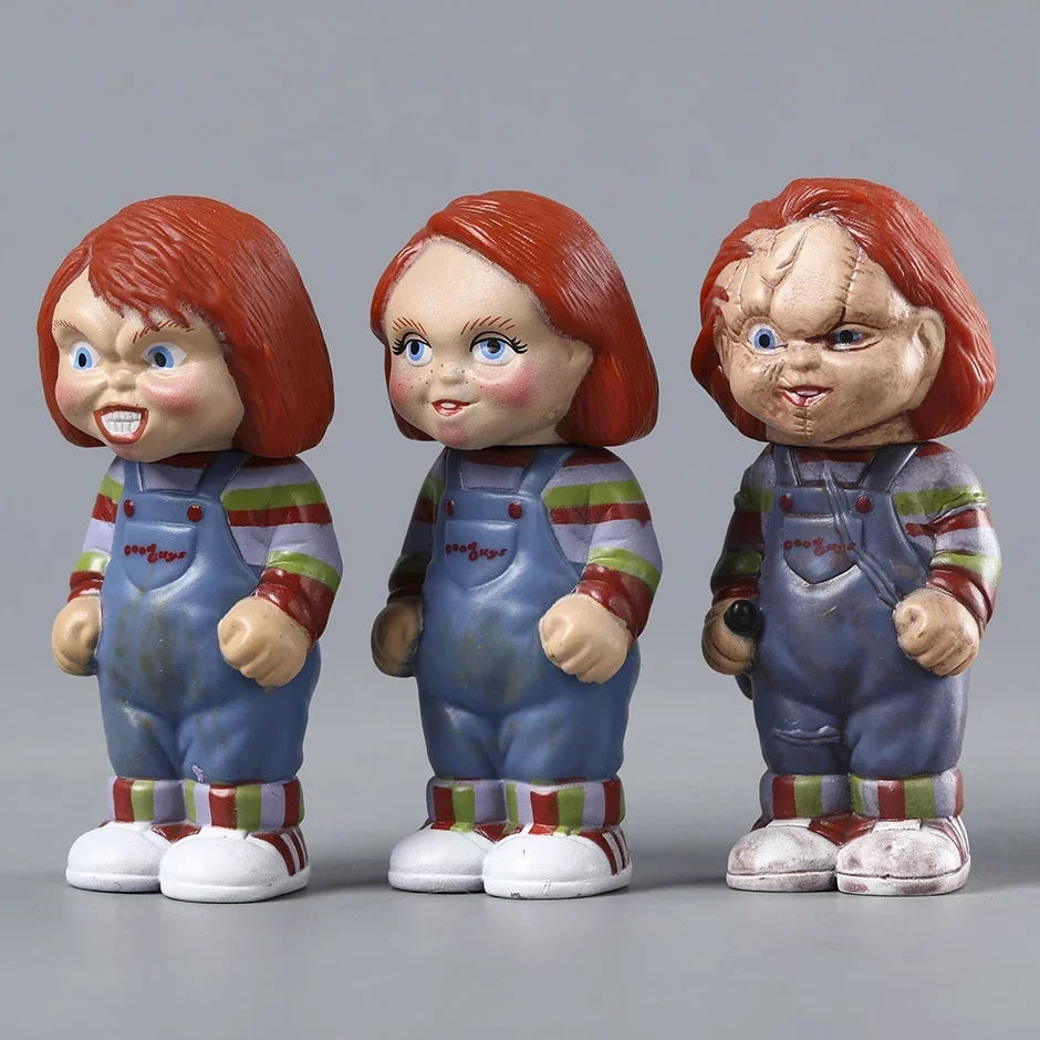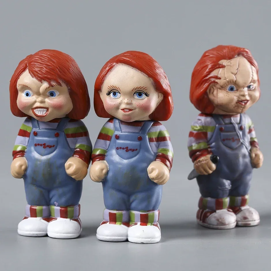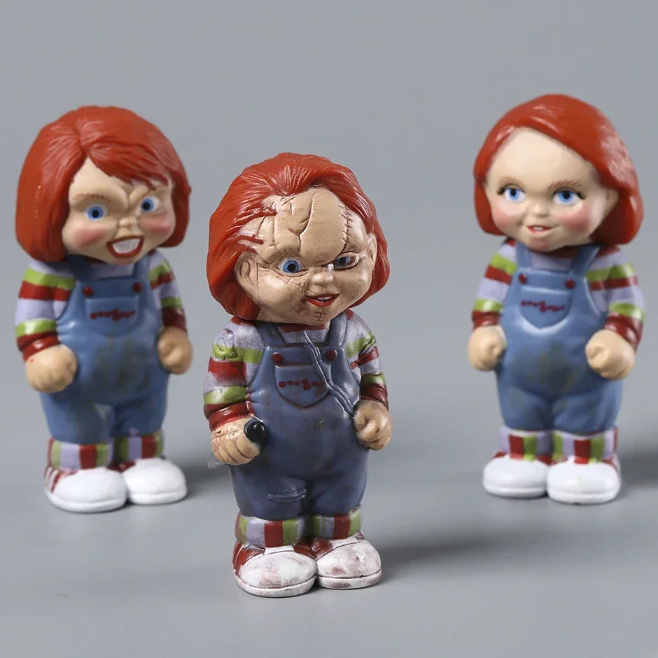 - > Bons caras criança jogar mini chucky horrível bonecas estatueta halloween bolo decoração brinquedos 3 pçs/set