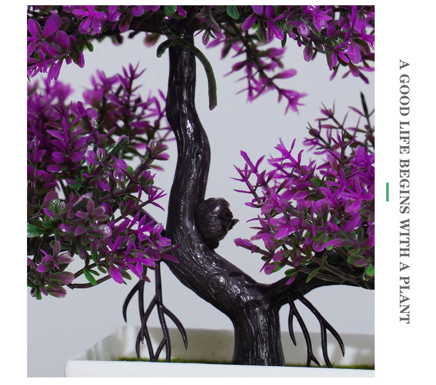 Bonsai de plástico artificial, árvore pequena, flor, arranjo de plantas falsas, decoração de quarto, mesa de casa, decoração de jardim ao ar livre
