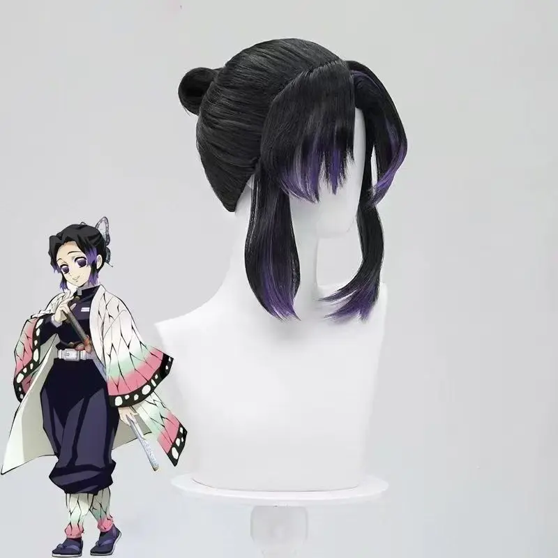 Borboleta shinobu demon slayer cosplay peruca sintética curta reta anime coser bonito menina peruca de alta qualidade festa de halloween